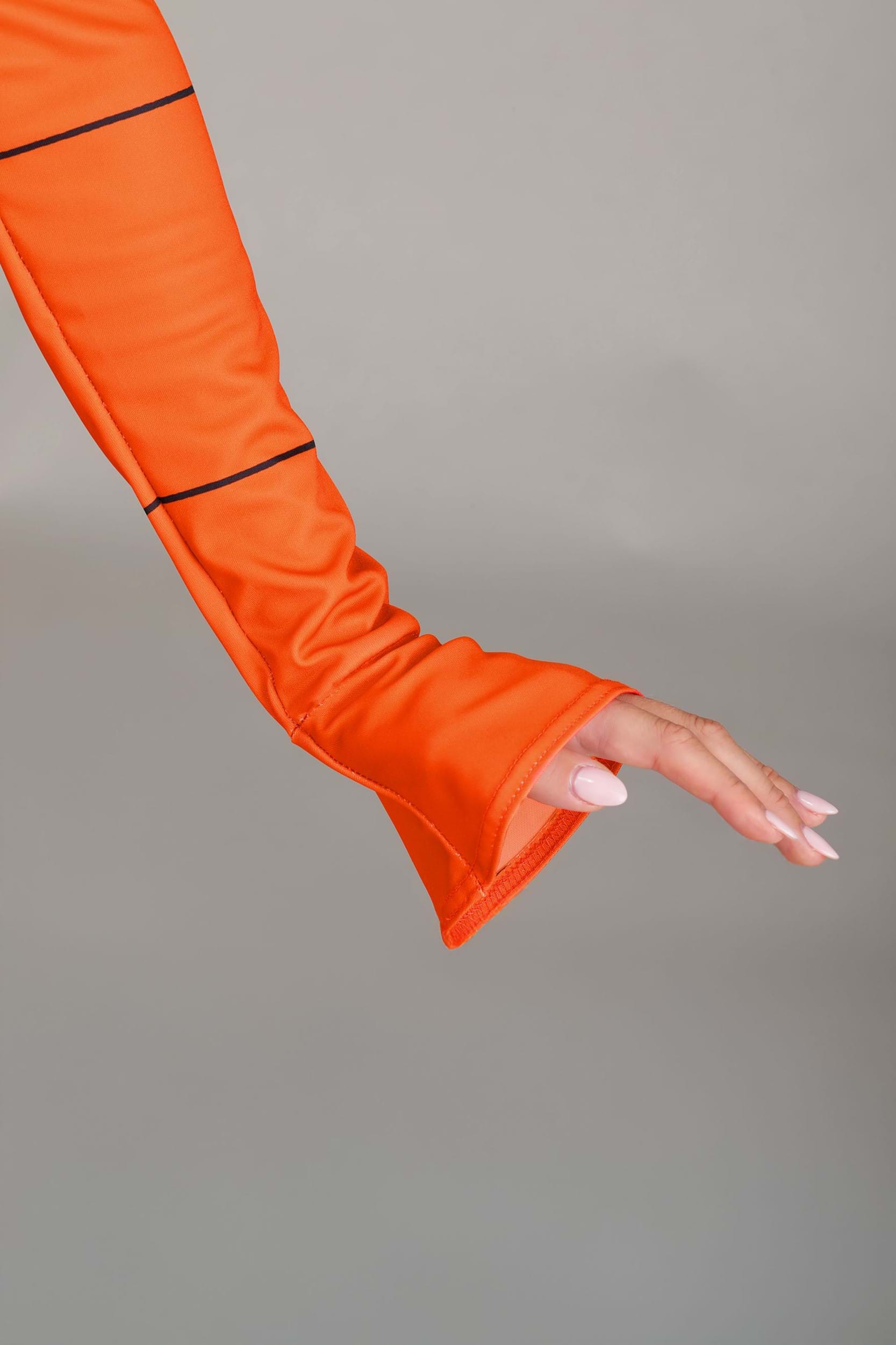 The costume includes a bright purple knit dress modeled after Angelica’s signature ensemble. It’s layered over a long-sleeved orange shirt and vibrant blue leggings with green polka dots—made from stretchy knit fabric for a comfy, fitted silhouette. Whether you’re stomping across the living room or running the daycare, you’ll look straight off the TV screen.