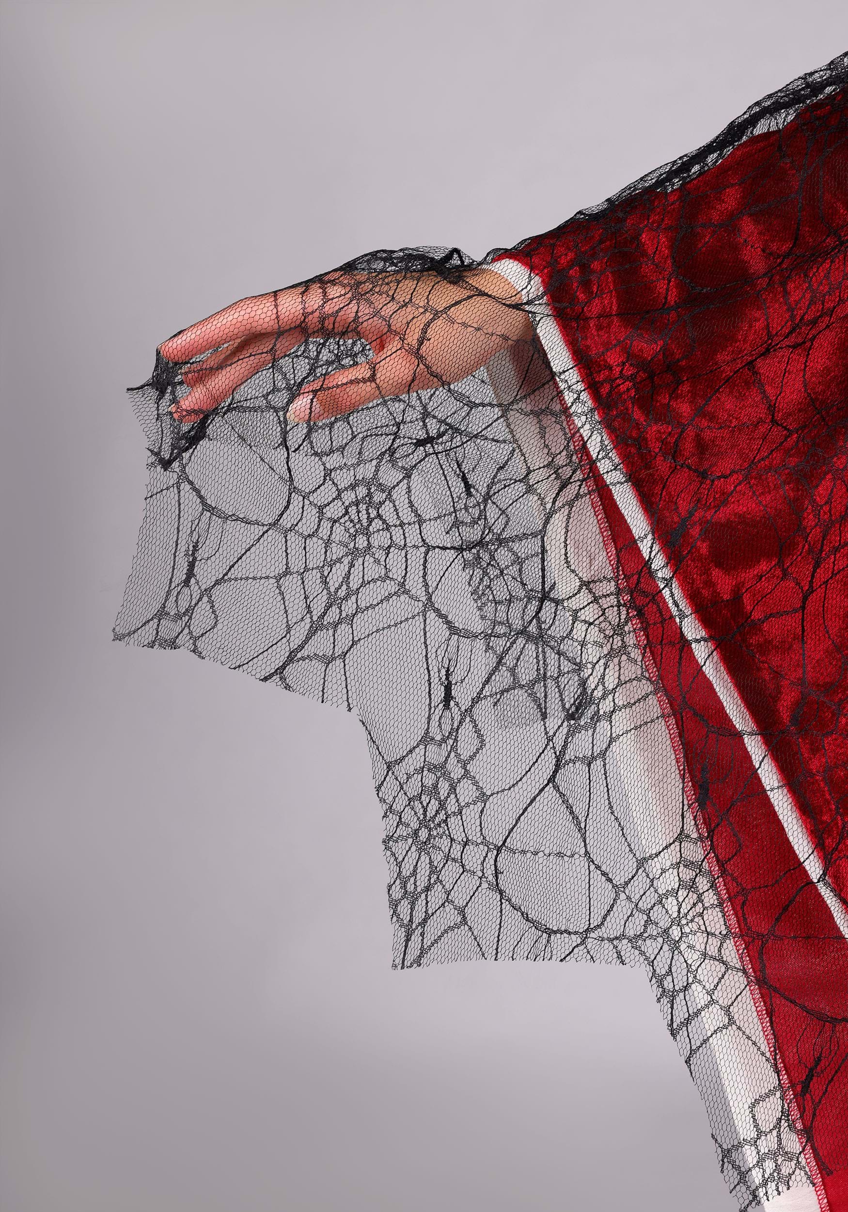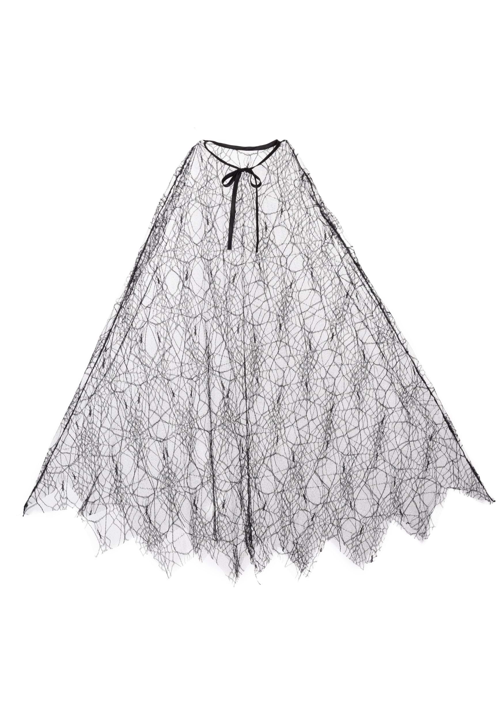 This is an exclusive Adult Sheer Black Cobweb Costume Cape.