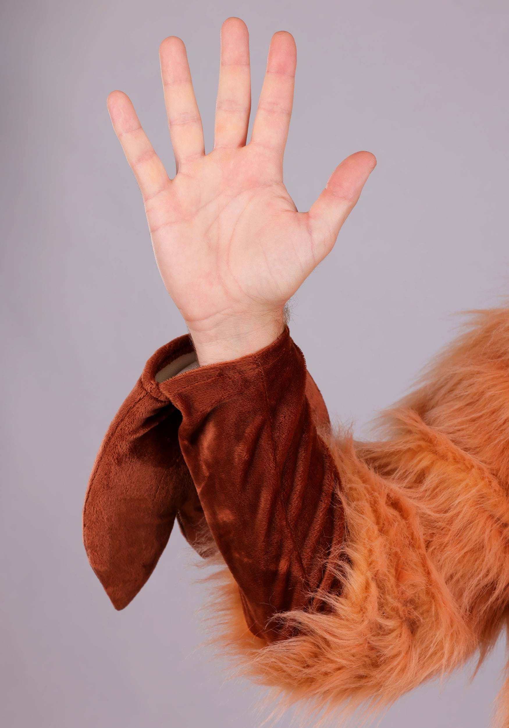 Crafted from thick, caramel-colored faux fur, this full-body jumpsuit envelops you in creature comfort. A soft jersey inner lining keeps things cozy underneath, while the front zipper ensures a simple slip-on experience—even when the moon is full and time is short. The entire suit is plush yet breathable, making it ideal for costume parties that last 'til the witching hour.