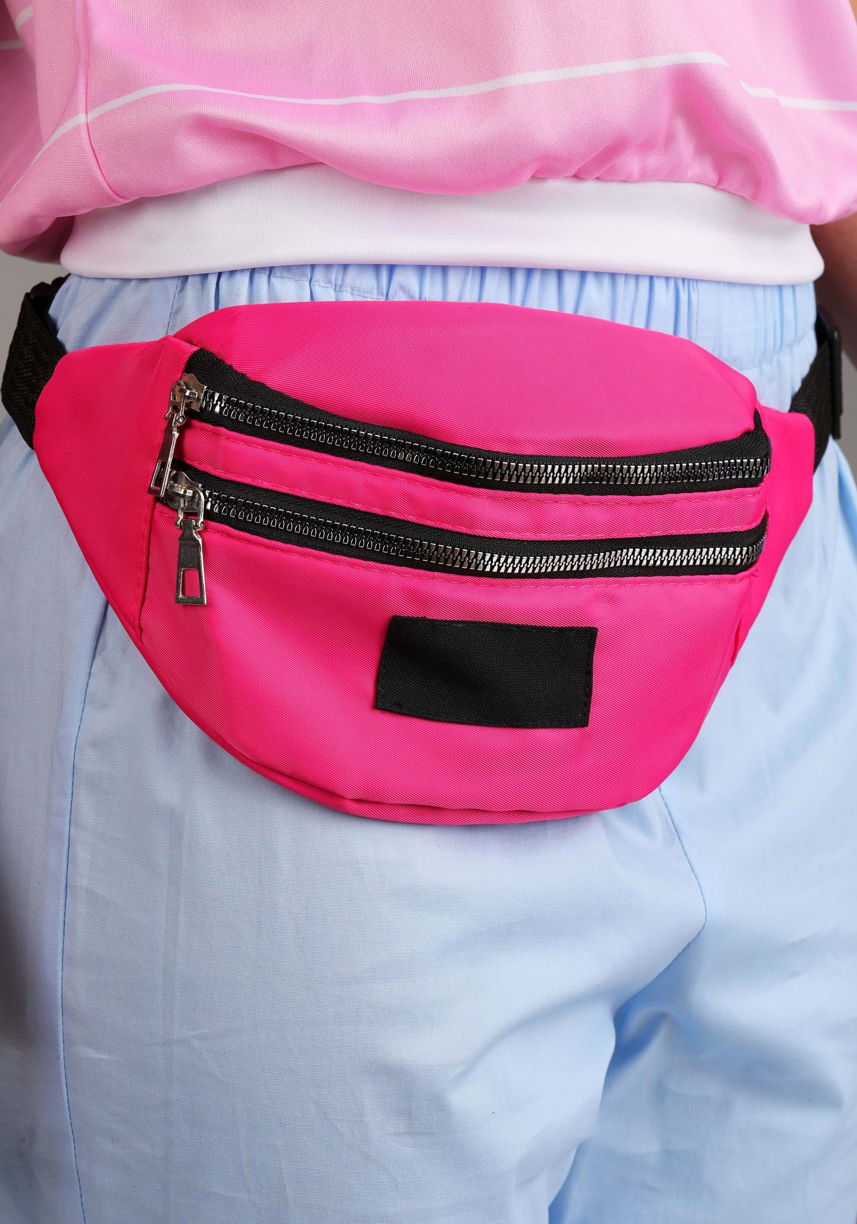 - Polyester fanny pack has a length adjustable strap with a parachute buckle, 2 zipper closures open to compartments