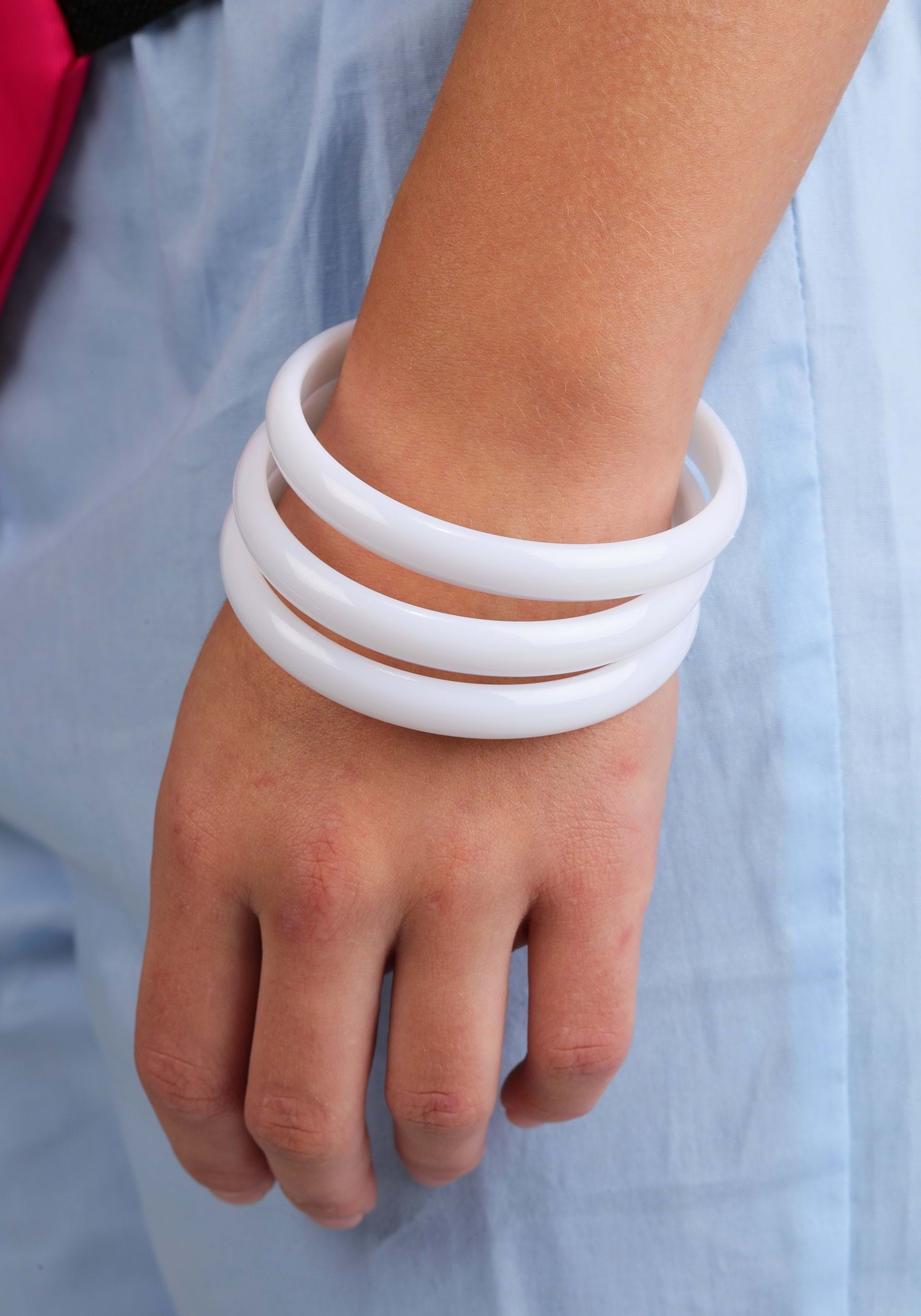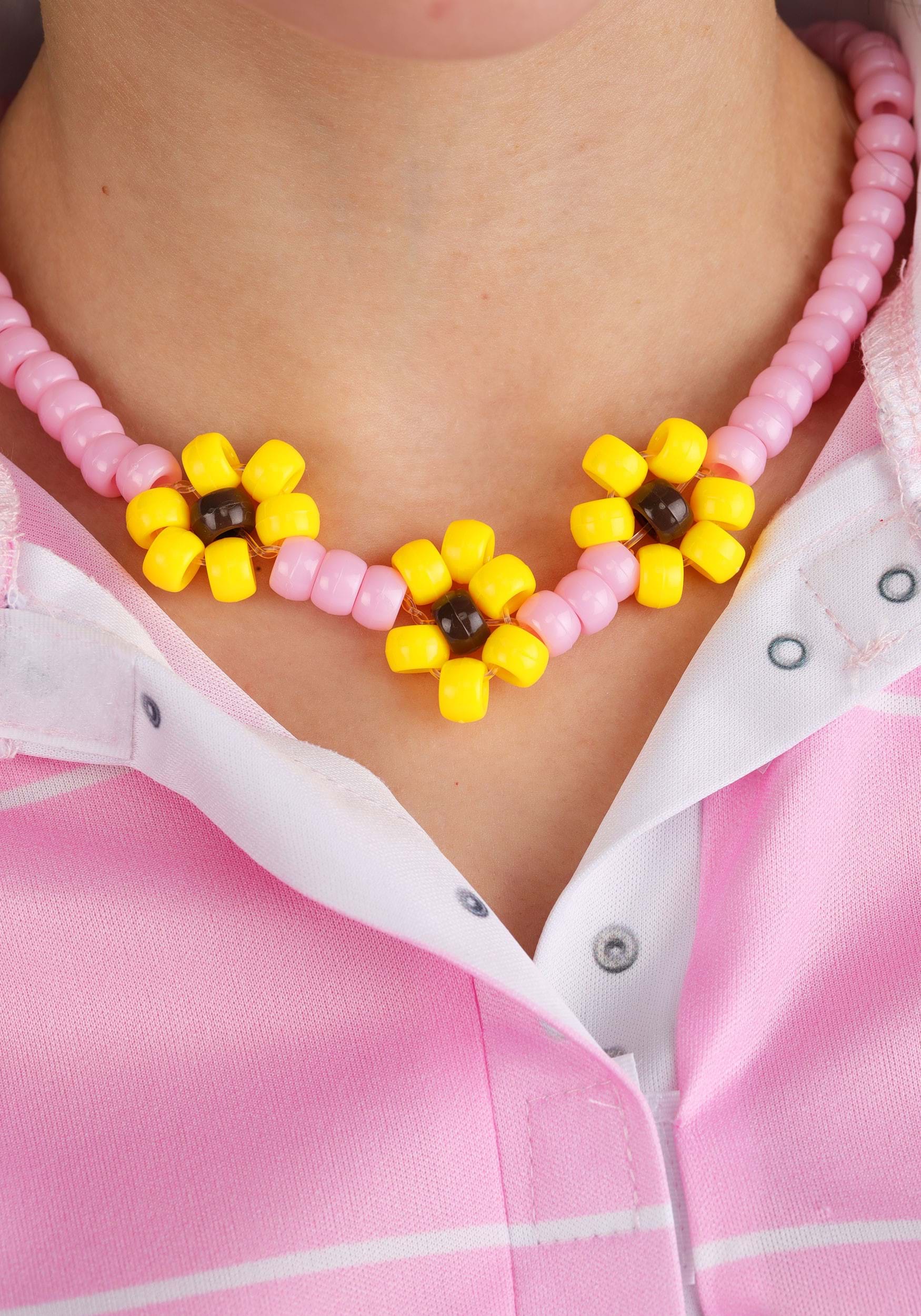 Deb's not complete without her trusty fanny pack—polyester, functional, and oh-so-fashionable, with adjustable straps and zippered compartments perfect for storing mini-lip glosses, pencils, or candy corn. A beaded necklace and a trio of plastic bangles slide on with ease, echoing Deb's unique DIY charm and handmade elegance.