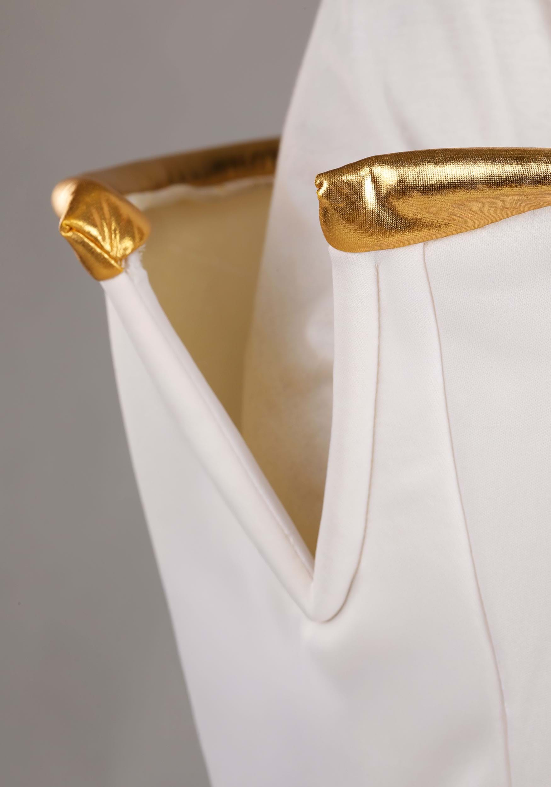 - Foam backed jersey knit tunic, gold lame trims and handle, felt petals, spring wire in the top and cup base