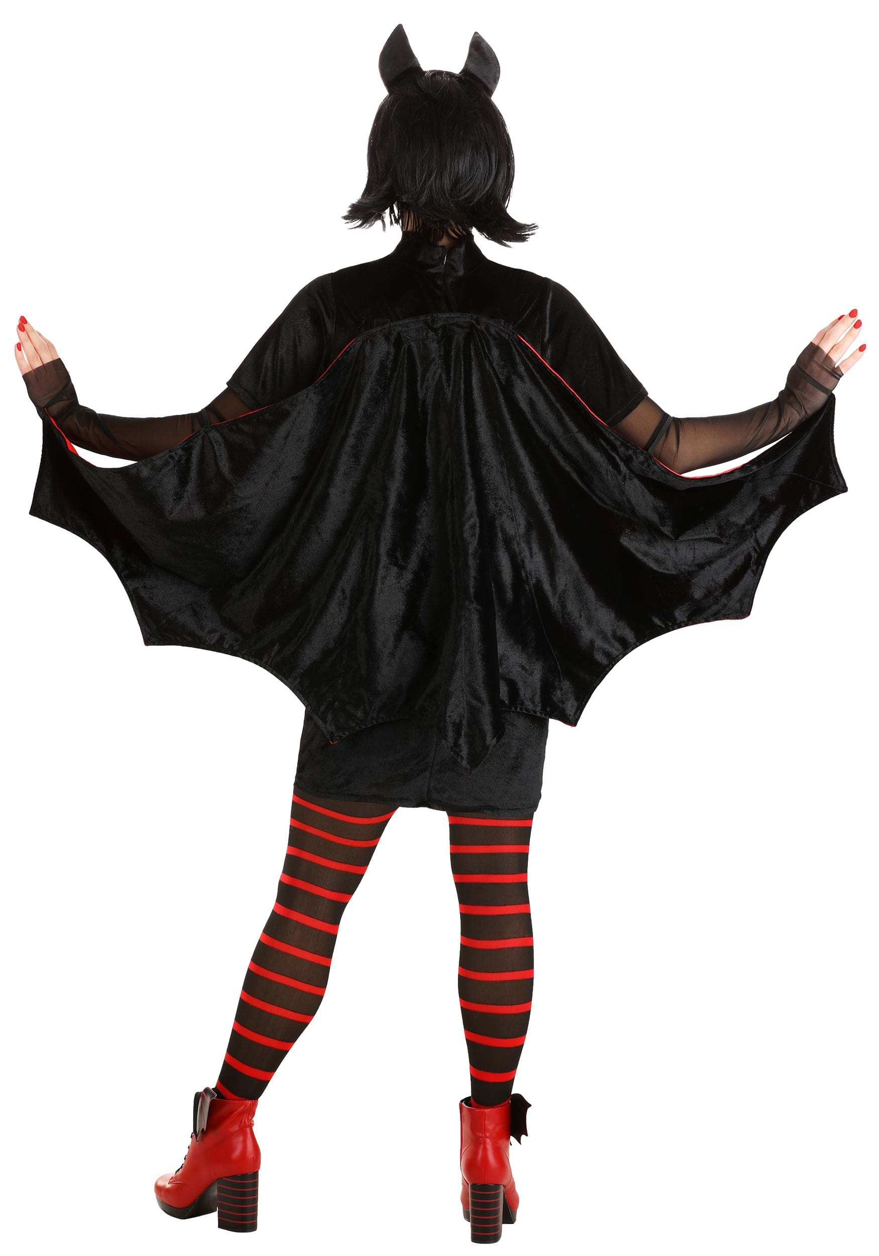 The costume is completed with included mesh sleeves featuring every teen's favorite thumb-hole detail and a pair of red-and-black striped semi-opaque tights. But if you're looking to step up your Mavis transformation, check out our exclusive Hotel Transylvania heeled boots that bring a grown-up flair and an extra pair of wings to the character style.