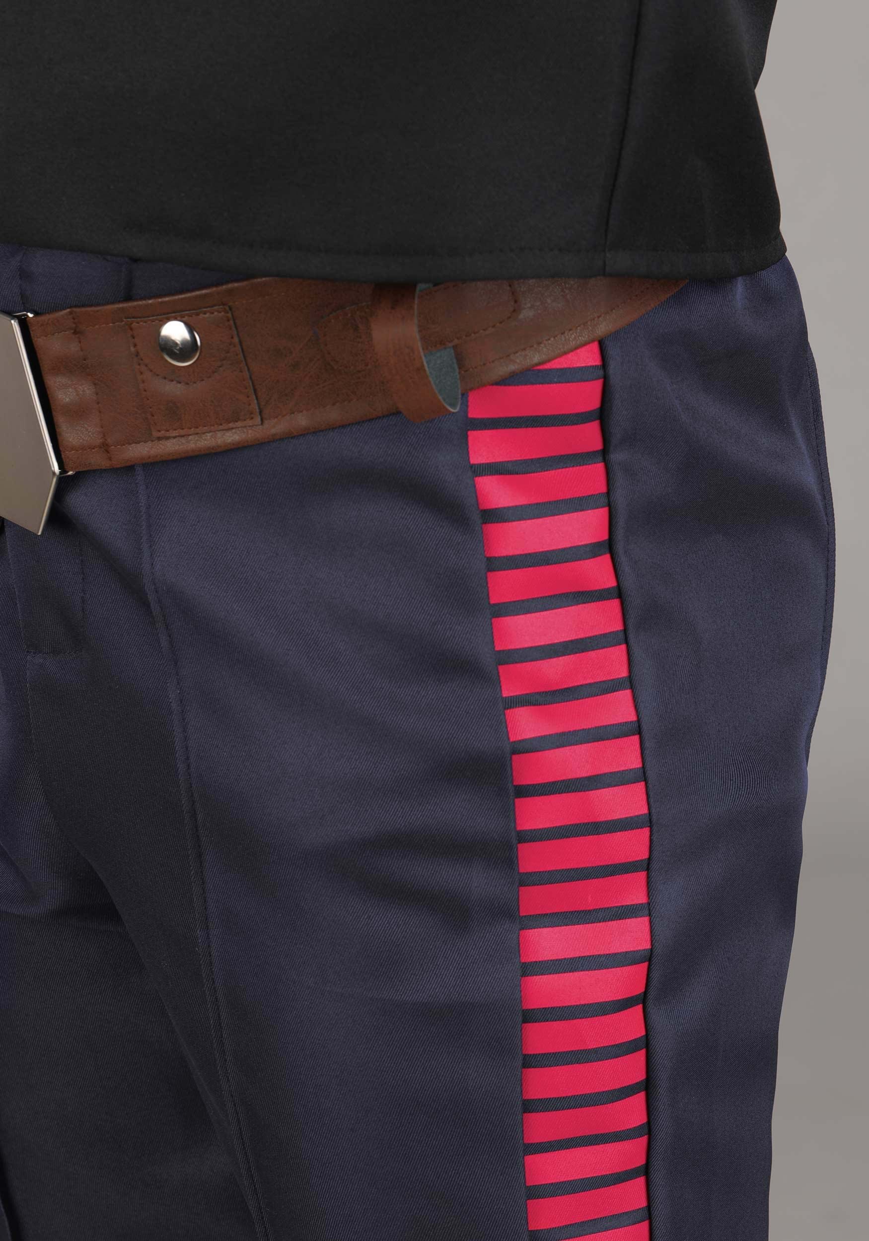 The navy blue twill pants come with the signature red Corellian Bloodstripes running down each leg—a mark of bravery and a clear sign that you're not just another cantina patron. With a functional zipper fly and belt loops at the waist, the pants have an authentic look, while giving you the freedom to move like a true smuggler dodging Imperial entanglements.