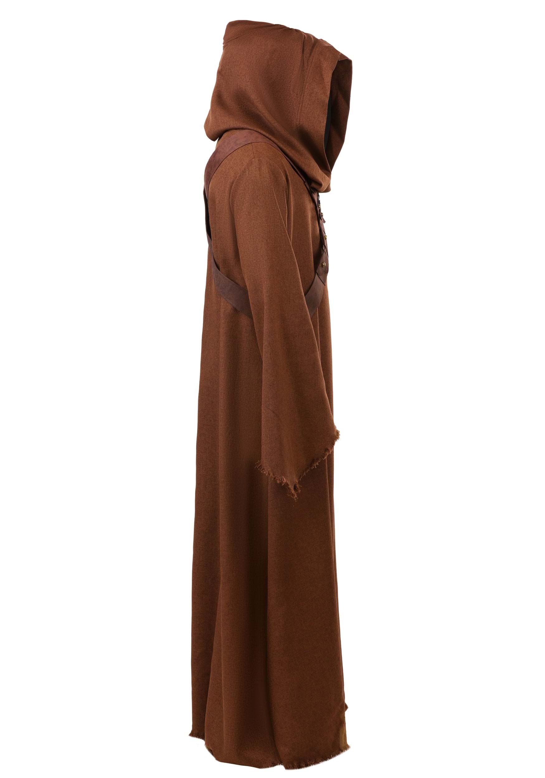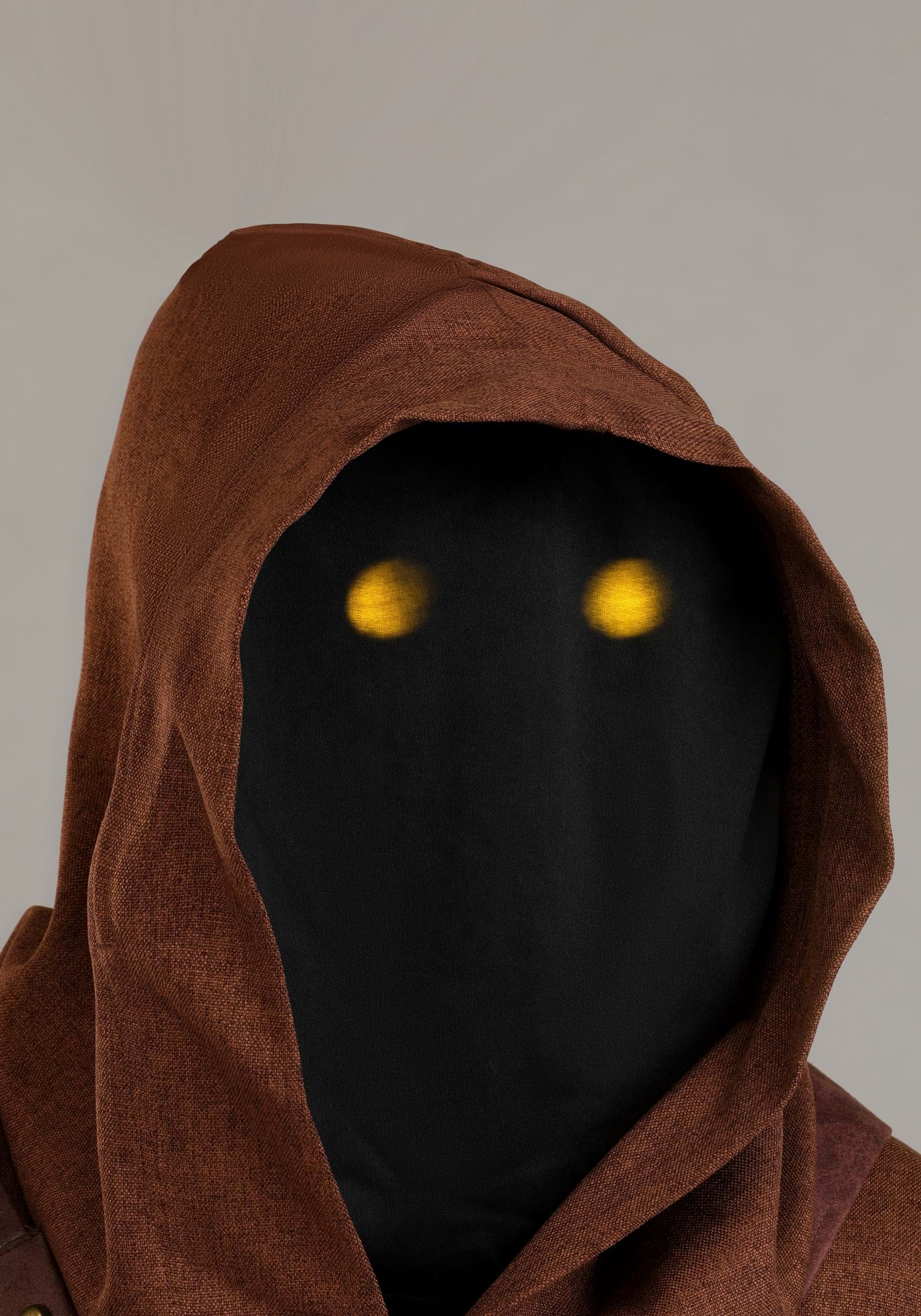 The matching oversized hood adds to the mystery, complete with a black mesh face covering that keeps your identity hidden while maintaining the dark, shadowy look Jawas are known for. The hood is lined for comfort, allowing for extended wear whether patrolling the sands or haggling with traders.