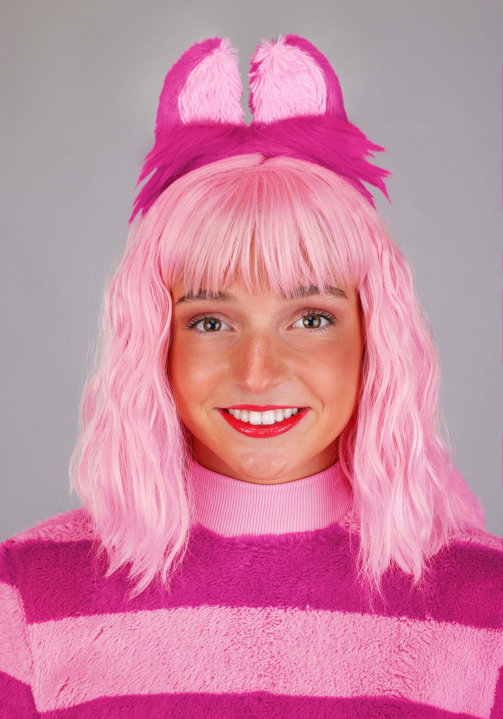 As comfy as a casual outfit and charming as a costume, this officially licensed Cheshire Cat outfit is up for every Halloween celebration. Pull-on the cuddle plush mock neck top and elastic-waistband skirt to adopt the character's vivid pink stripes. Keep the attached tail aloft by securing a loop on its end to the button sewn in the back of the shirt. Complete the look with the included ears headband and coordinating pink paw gloves!