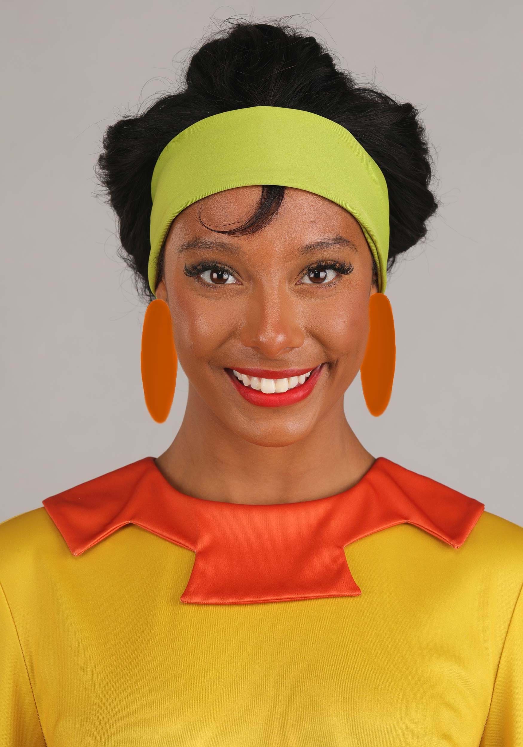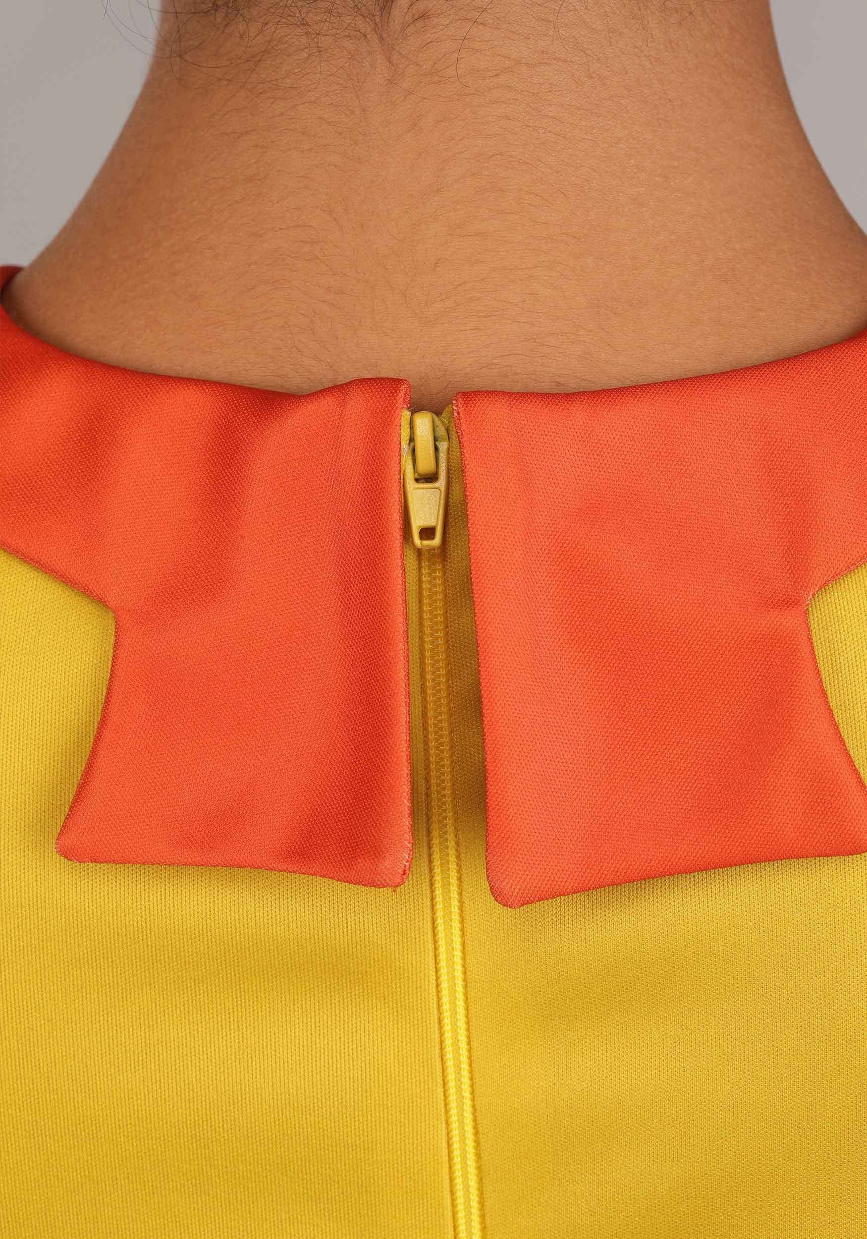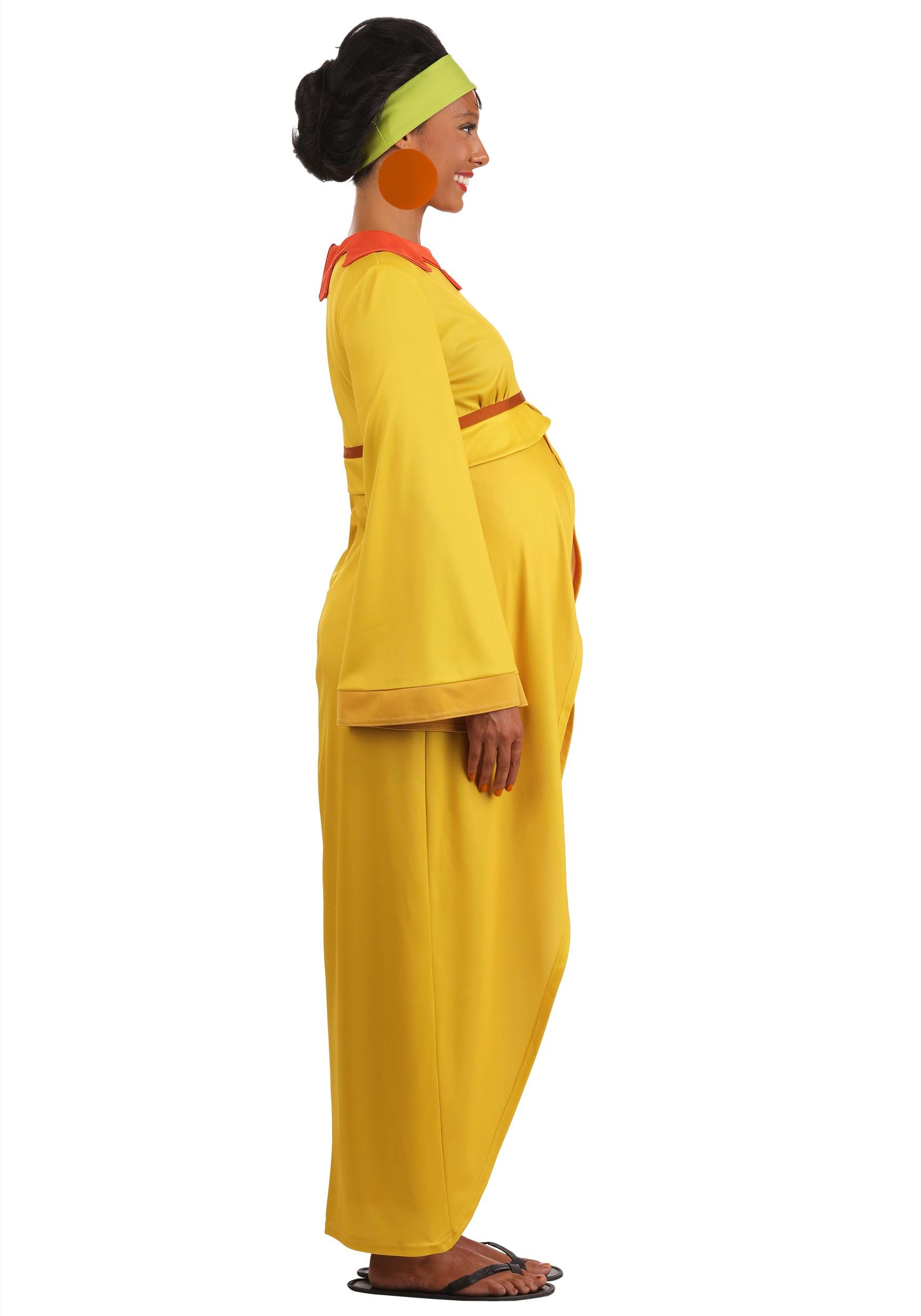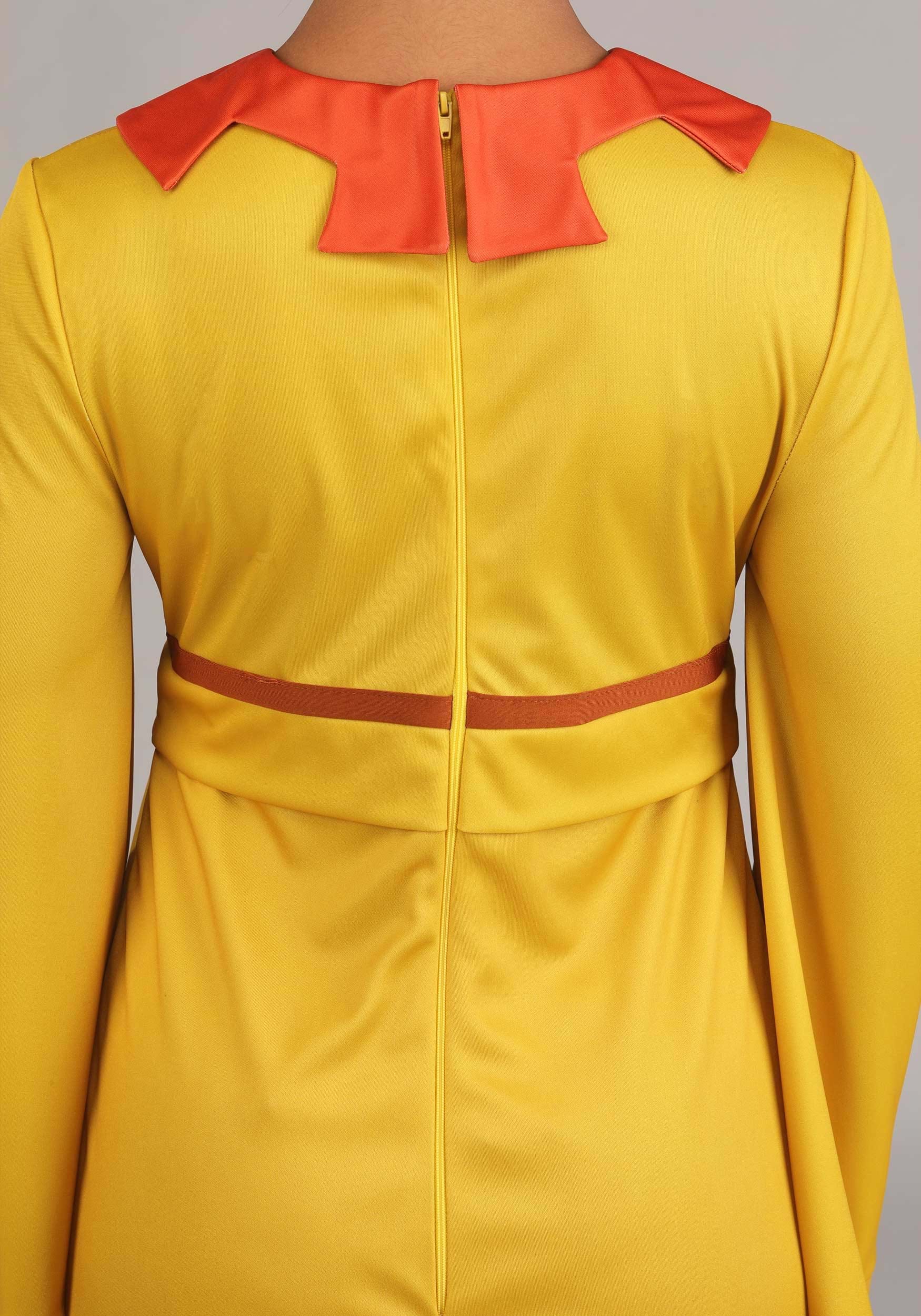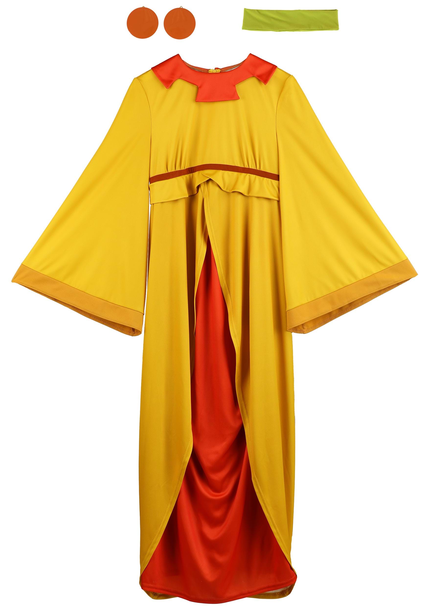 This officially licensed Chicha costume nails the details starting with a long jersey maternity dress. Its billowy sleeves, ruched waist, and zipper down the back gives it a put-together, practical, and fun style. Meanwhile, the attached belt, contrasting sleeve cuffs, and unique notched collar ensure it's just like Chicha's signature outfit. Complete the look with included clip-on earrings and a stretchy headband!