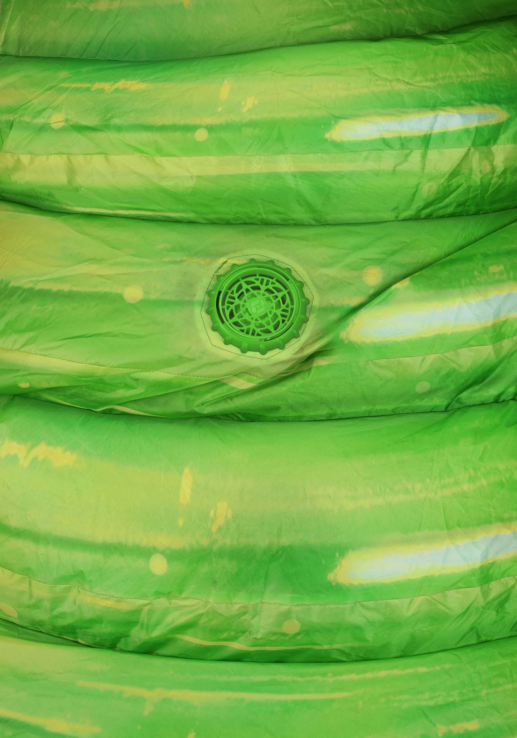 Built with lightweight windbreaker-style fabric, the suit is equipped with a built-in fan that inflates the costume in just minutes. Once inflated, the round, ringed layers create a hilariously faithful rendition of the cheerful green blob. The fan stays on during wear to maintain the bubbly, larger-than-life shape, ensuring Blobby stays bouncy and bold from start to finish.