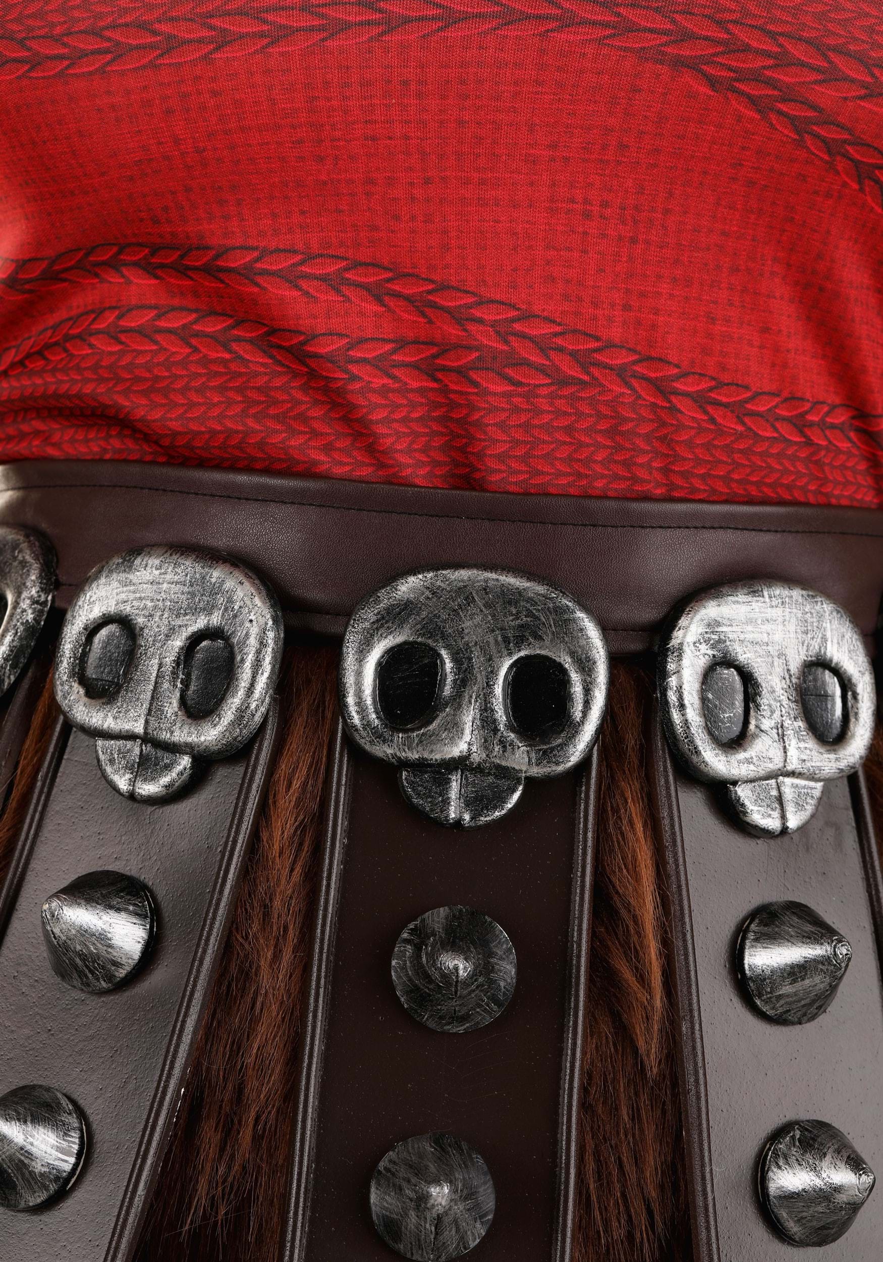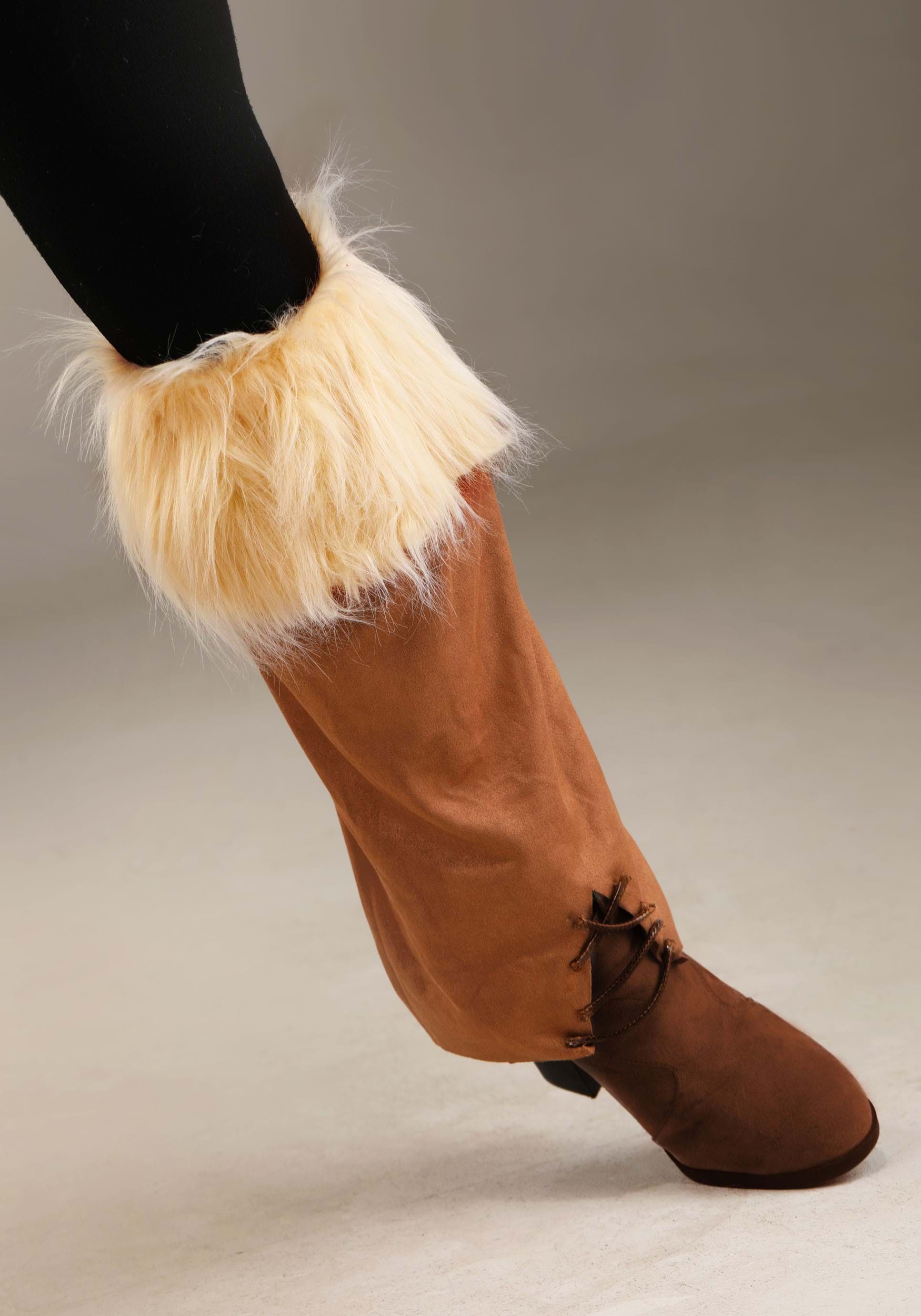 This costume doesn’t just look tough—it’s built for action. The molded foam shoulder armor adds a layer of protection, easily securing to the dress with hook and loop fasteners. Faux suede gauntlets, complete with thumb holes and faux fur trim, slide onto your arms with ease, staying securely in place with elastic bands. The matching faux suede boot tops also feature faux fur and elastic, ensuring they stay snug on your legs as you charge into battle.