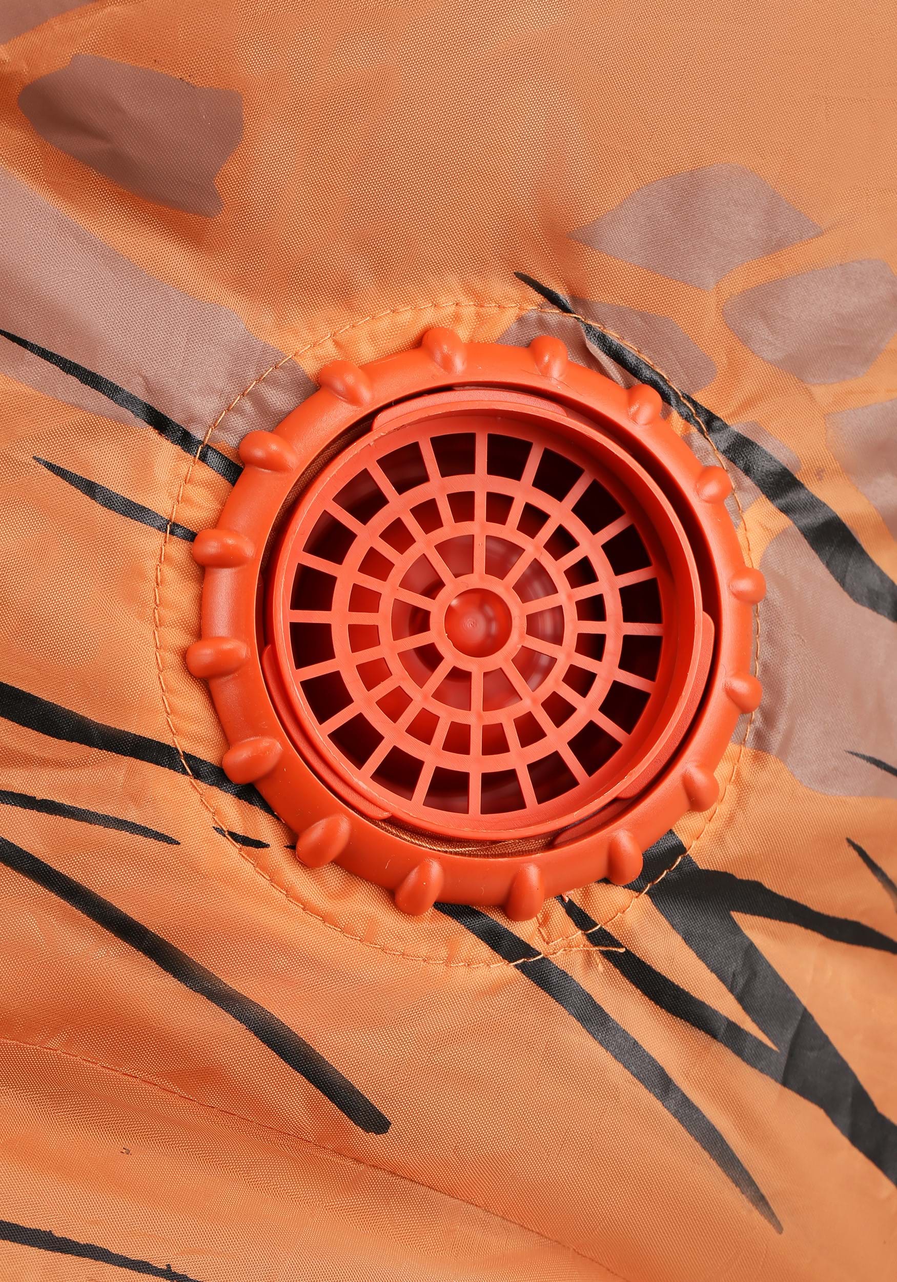 This costume features an inflatable jumpsuit that is easy to put on and take off. With a front zipper and elastic at the wrists and ankles, it provides a comfortable fit for a variety of body sizes. The clear vinyl vision port in the character neck ensures you can see clearly while you stomp around in your dino disguise. Don't forget to slip on the included gloves with elastic at the wrists to complete the look!