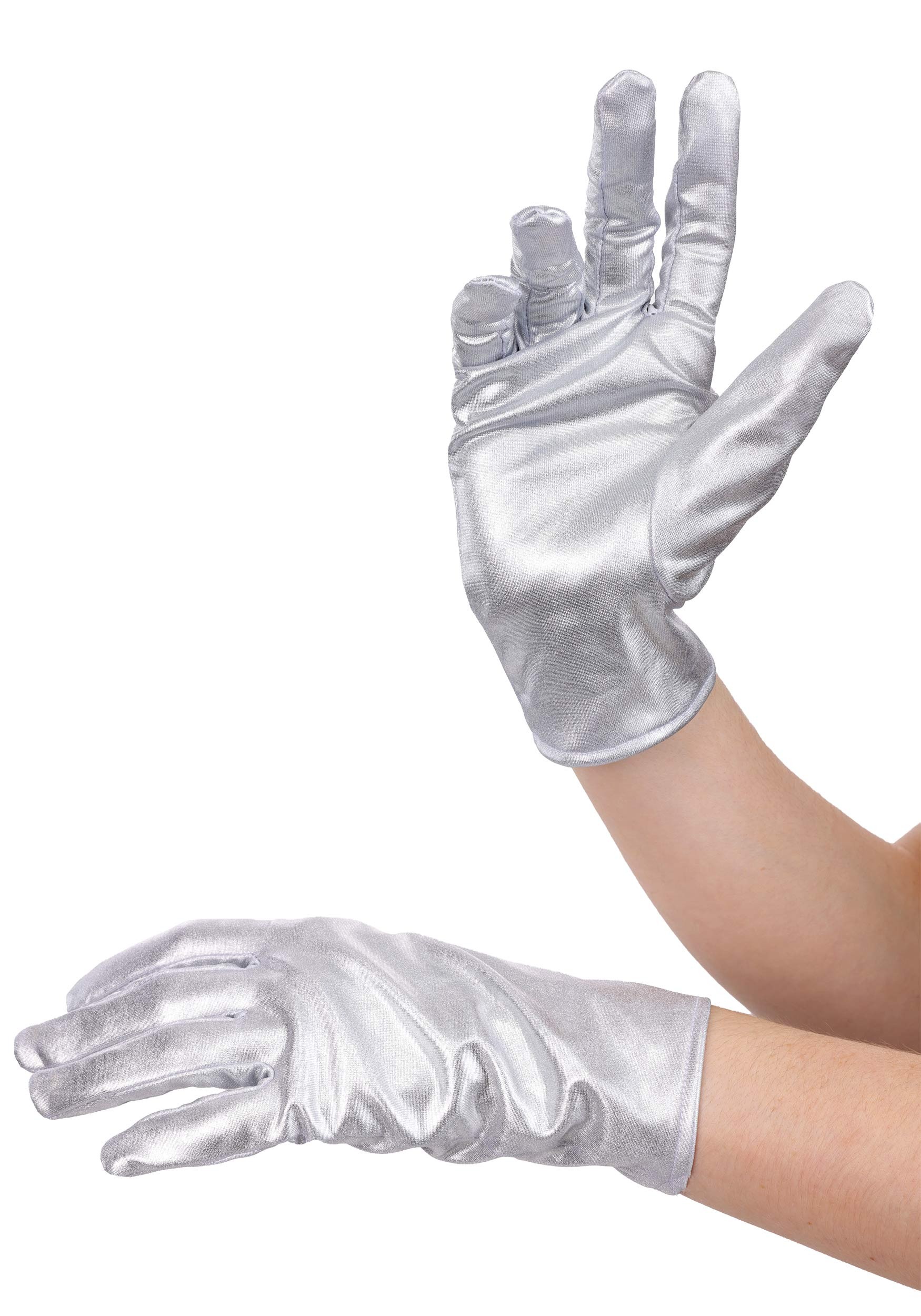 This is an exclusive Metallic Silver Women's Costume Gloves.