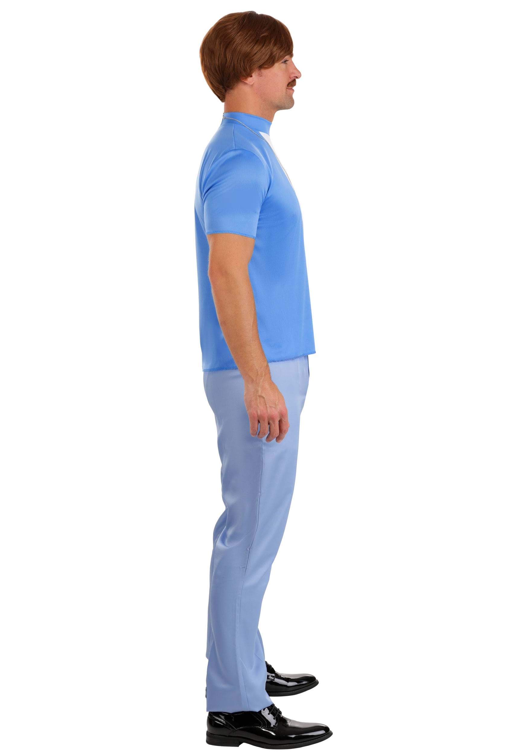 The powder-blue jersey shirt takes center field with a bold white front panel and ribbed collar, echoing the unmistakable style of Rico's practice gear. It's athletic, it's dated, and it's utterly hilarious. Coordinating poplin pants complete the outfit, featuring an even lighter shade of blue and crisp press lines that scream, "I could throw a football over them mountains."