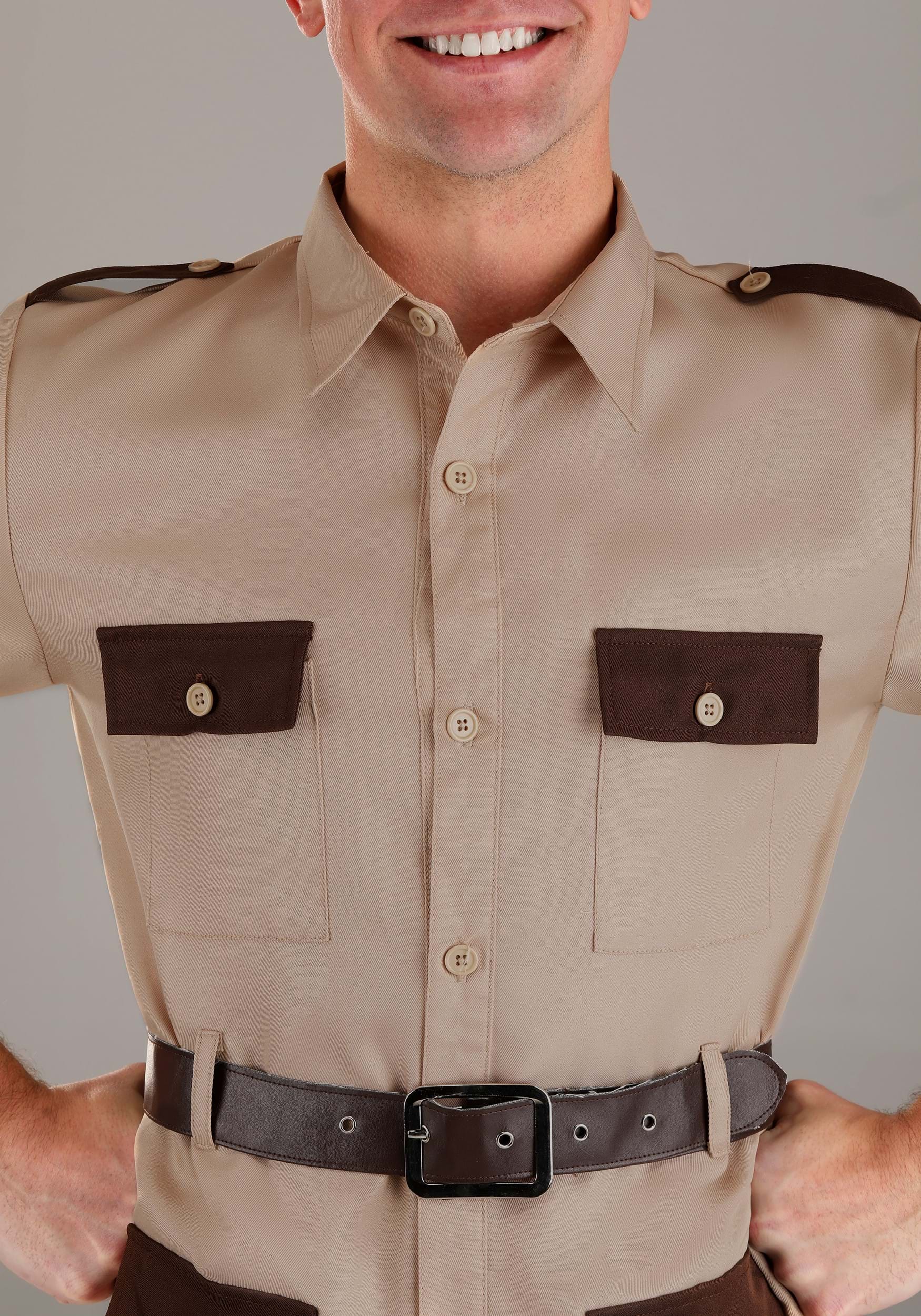 This costume features a shirt with buttons at the center front and on the pockets, as well as epaulets and sleeve cuff straps, giving it an authentic safari look. The four functional front pockets with buttoned flaps provide ample space to store your essential safari gear. And let's not forget about the shorts, which have an elastic waistband and cuffed hems for a comfortable fit during long treks through the wilderness.