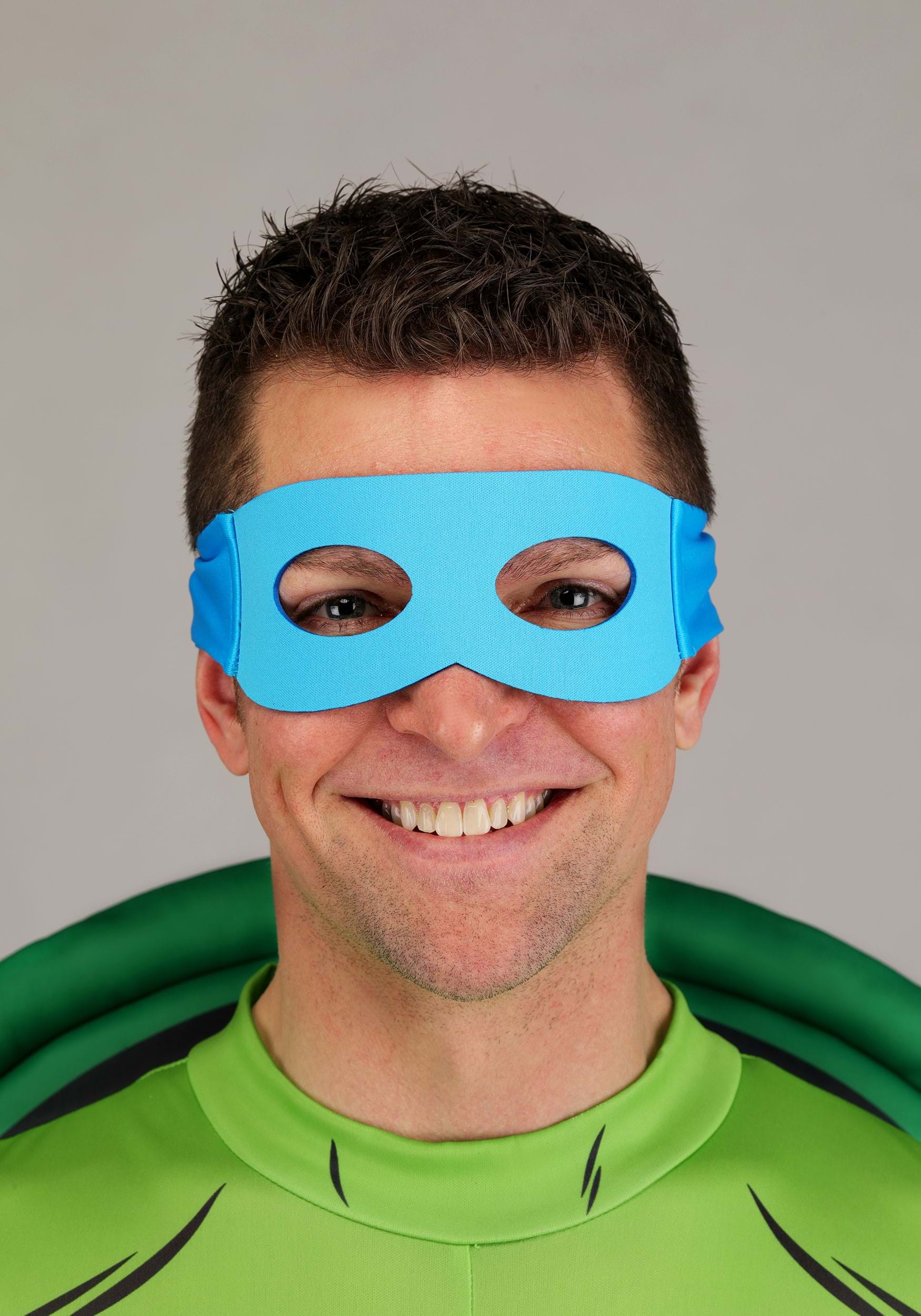 Leonardo's iconic blue is front and center—bold elbow pads, knee pads, and wrist wraps are built into the jumpsuit with jersey knit fabric. The soft foam eye mask features the unmistakable blue band tied across the face, completing Leo’s signature stoic look. Whether you're fighting crime or hitting the party circuit, these pops of color shout “team leader” from every angle.