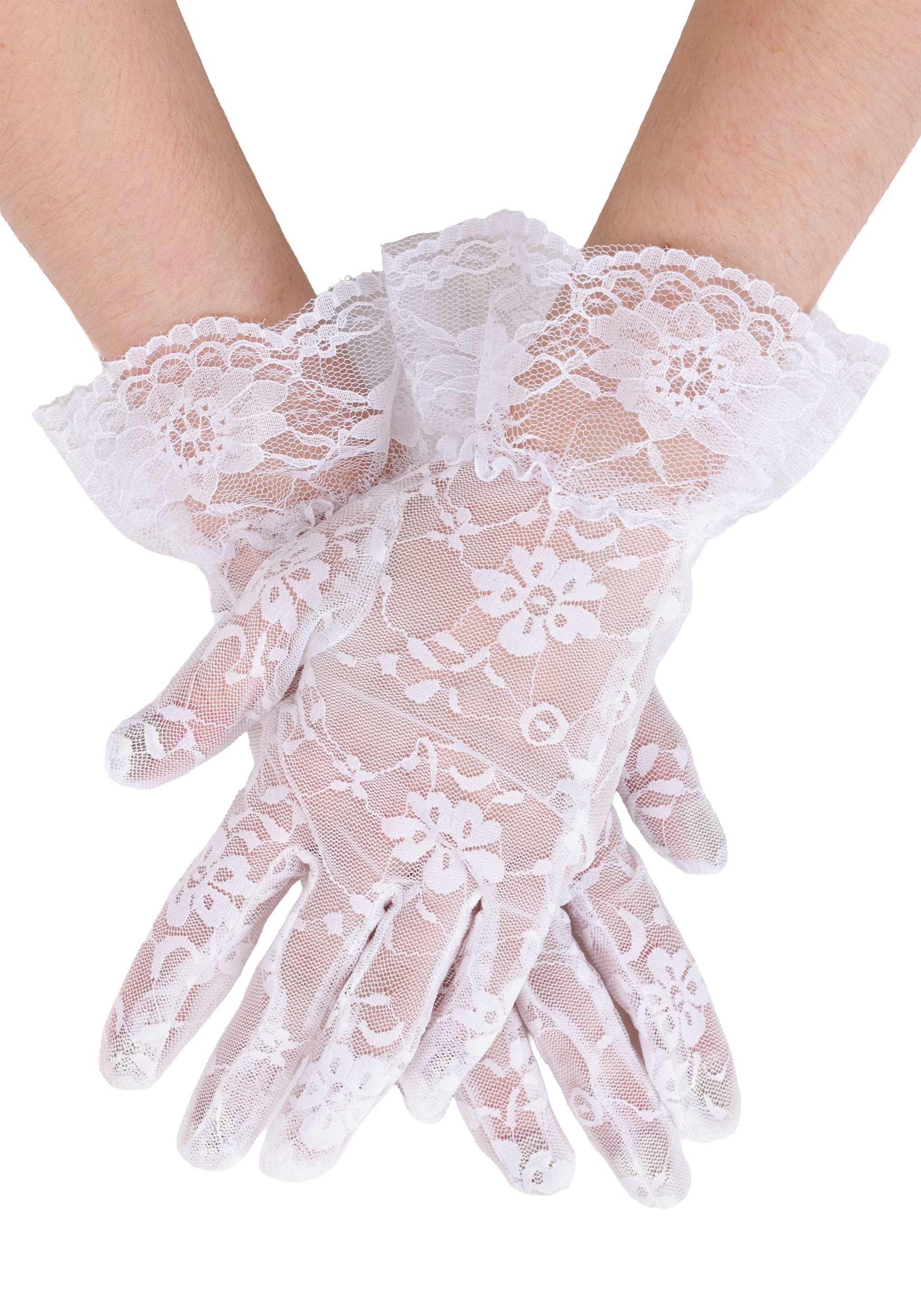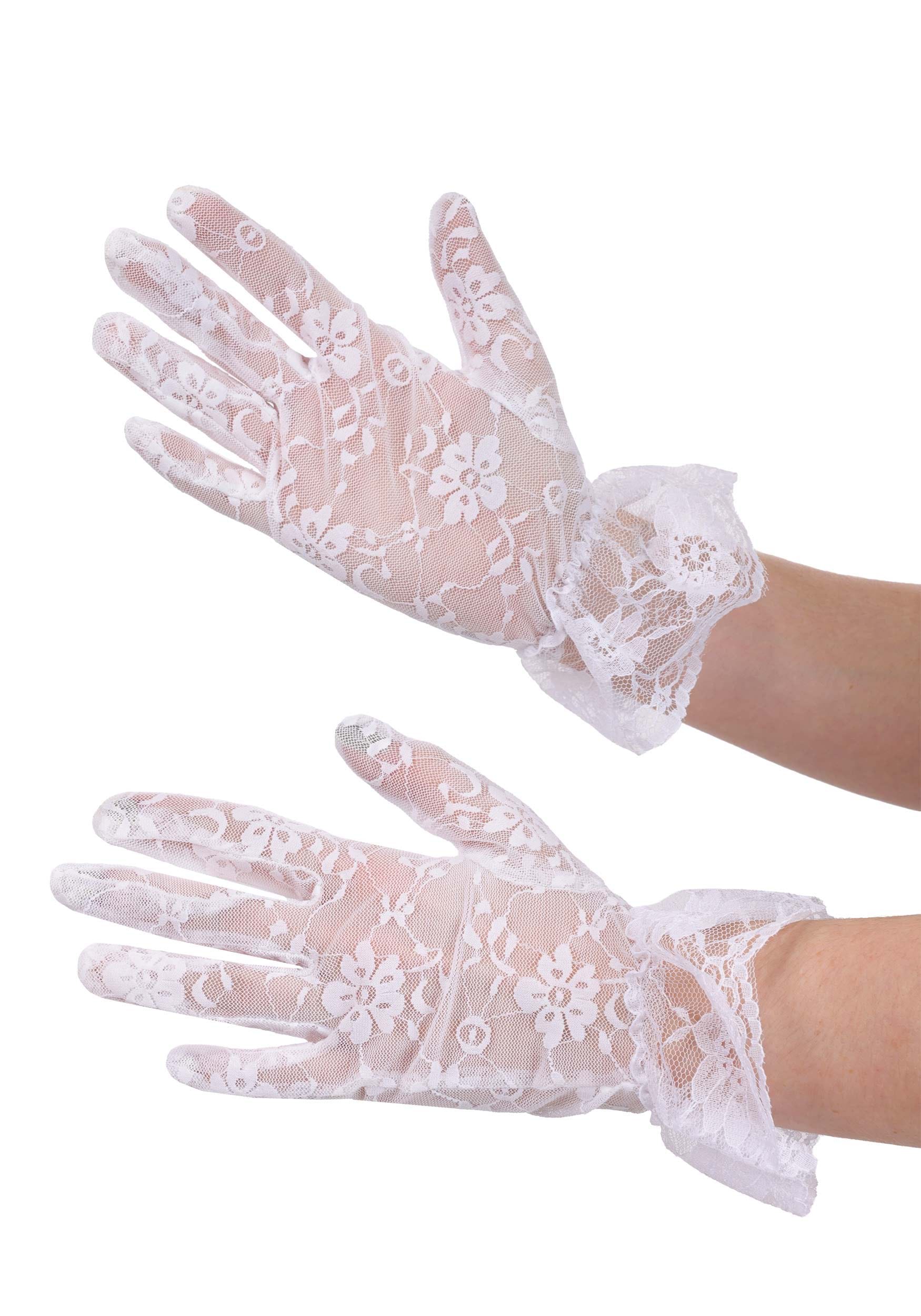 This is an exclusive Victorian White Lace Women's Costume Gloves.