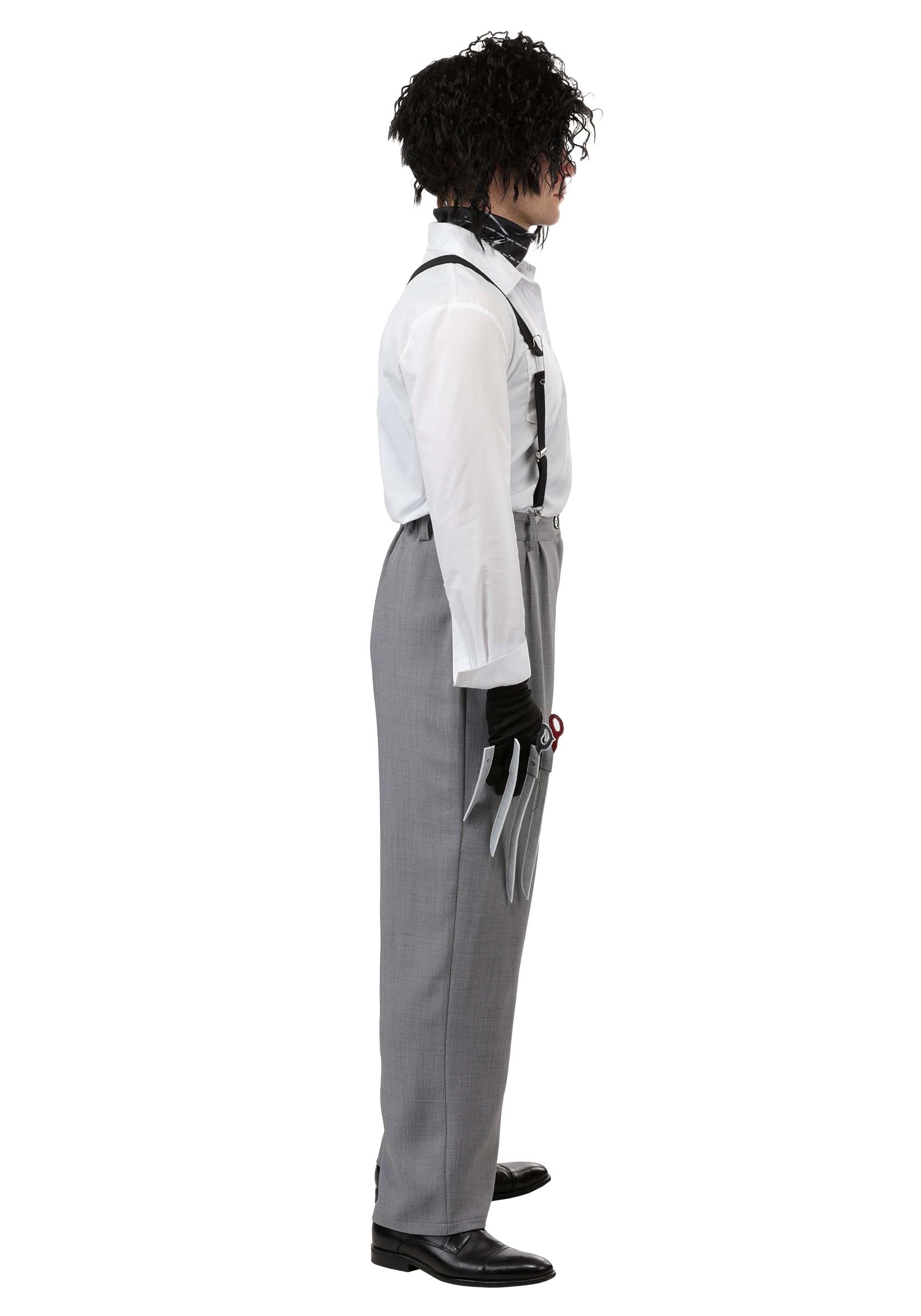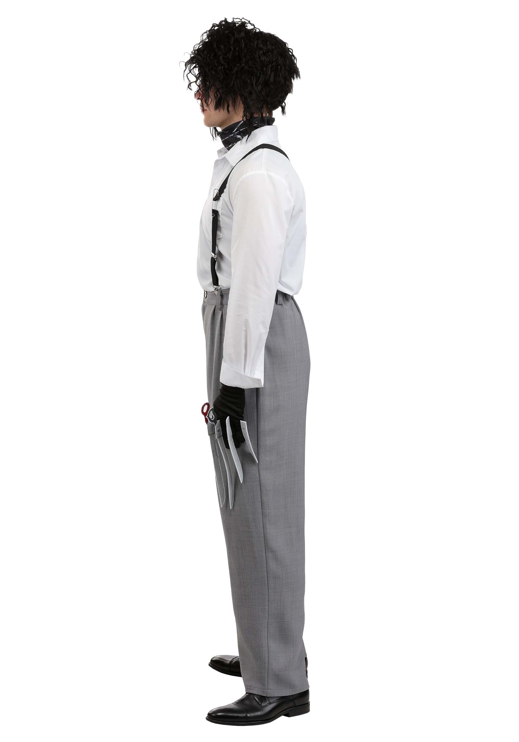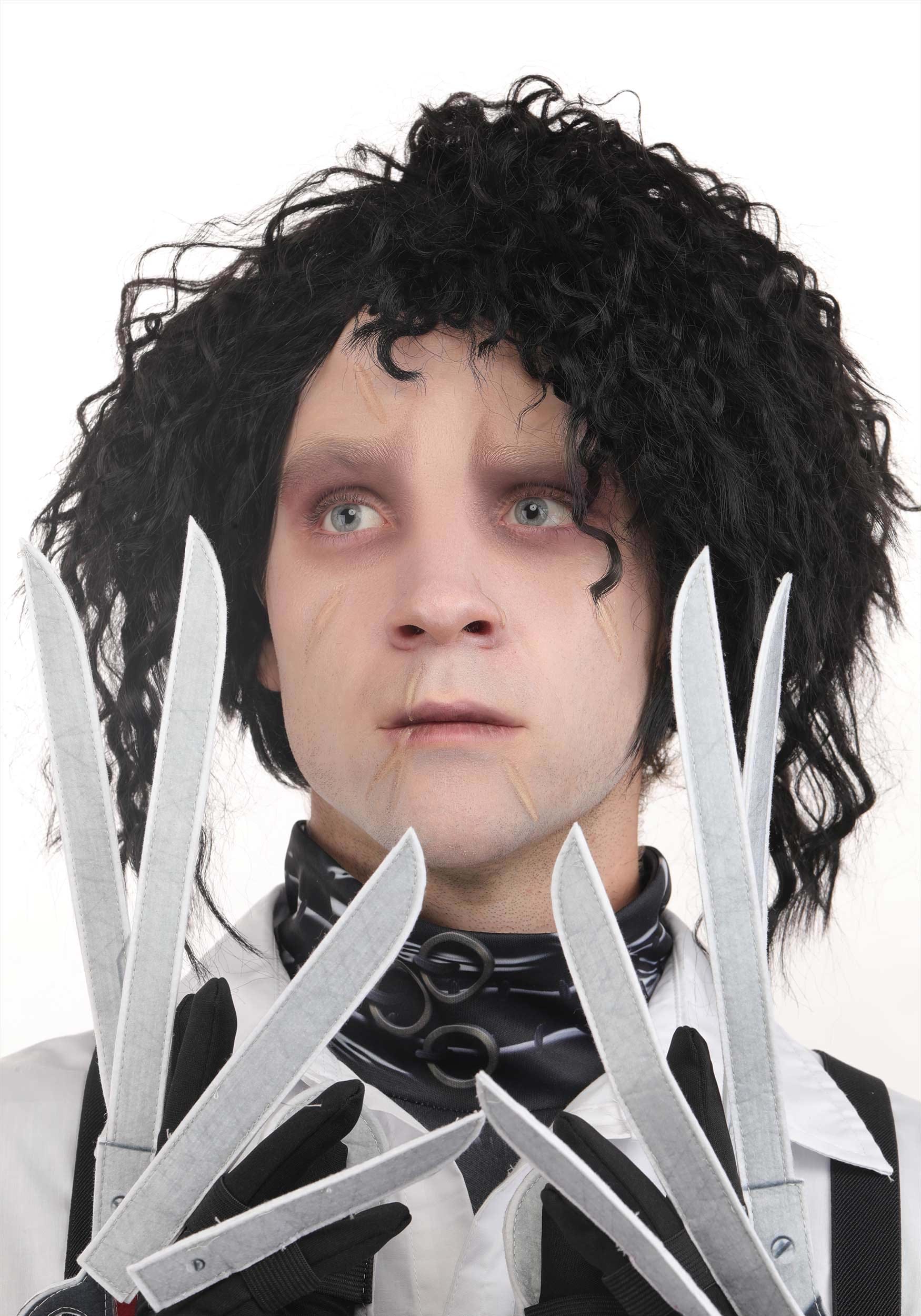 Suspenders with safety pin connections perfectly recreate his makeshift, DIY style, while wrist-length jersey gloves slide on to complete the look. But the real showstopper? The stiffened felt scissor blades, each with an elastic loop to slide over your fingertips, giving you Edward's unmistakable, razor-sharp hands.