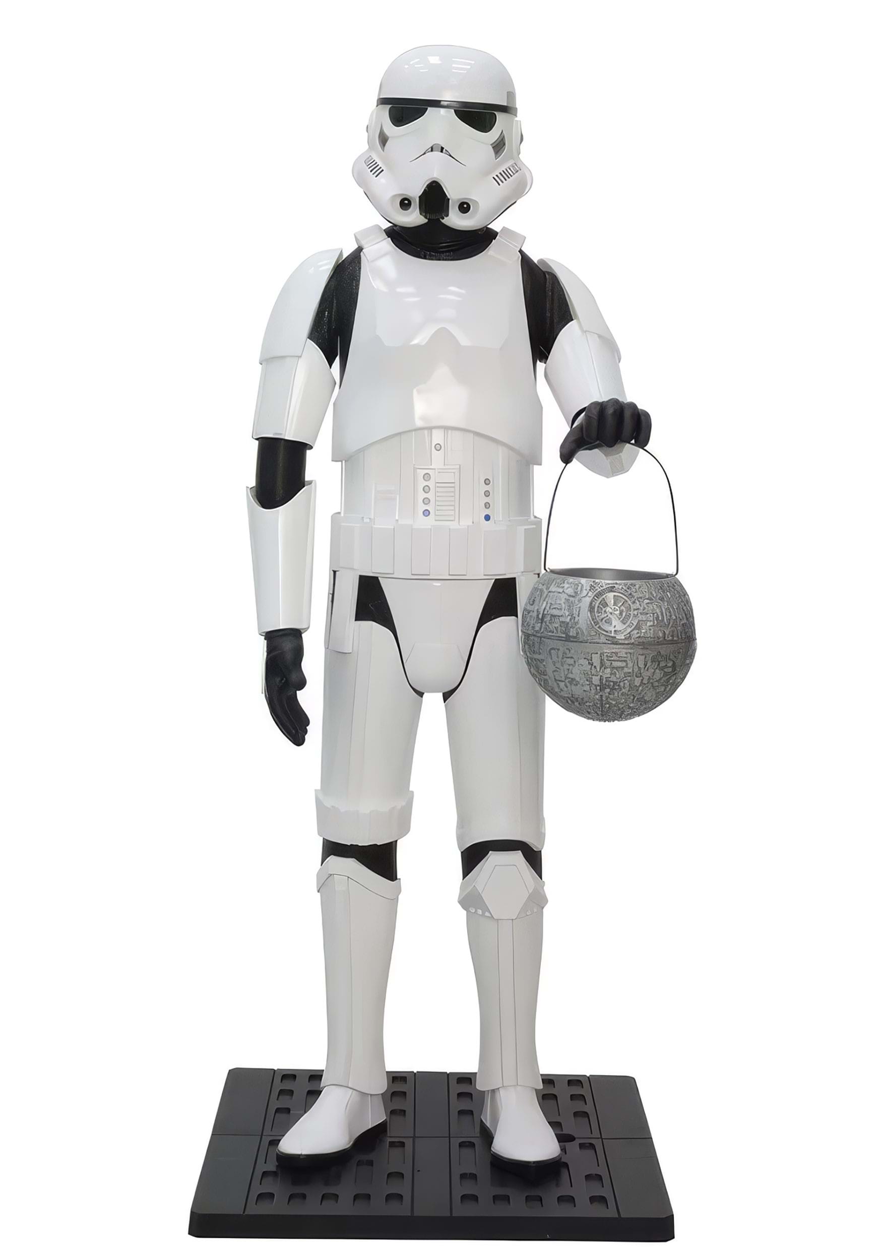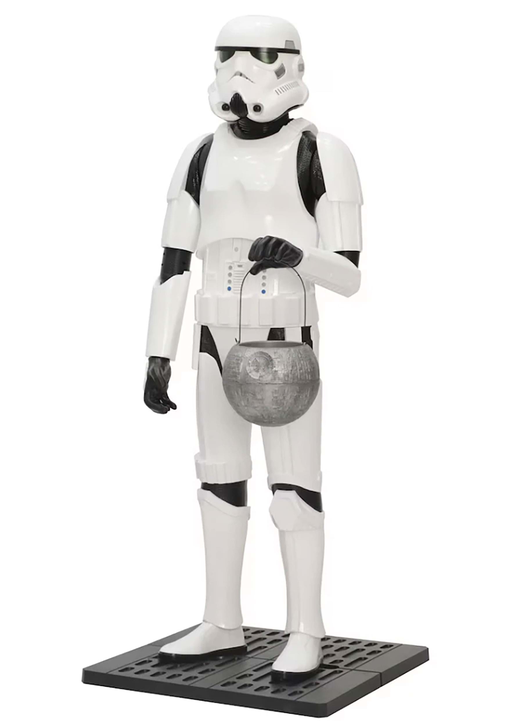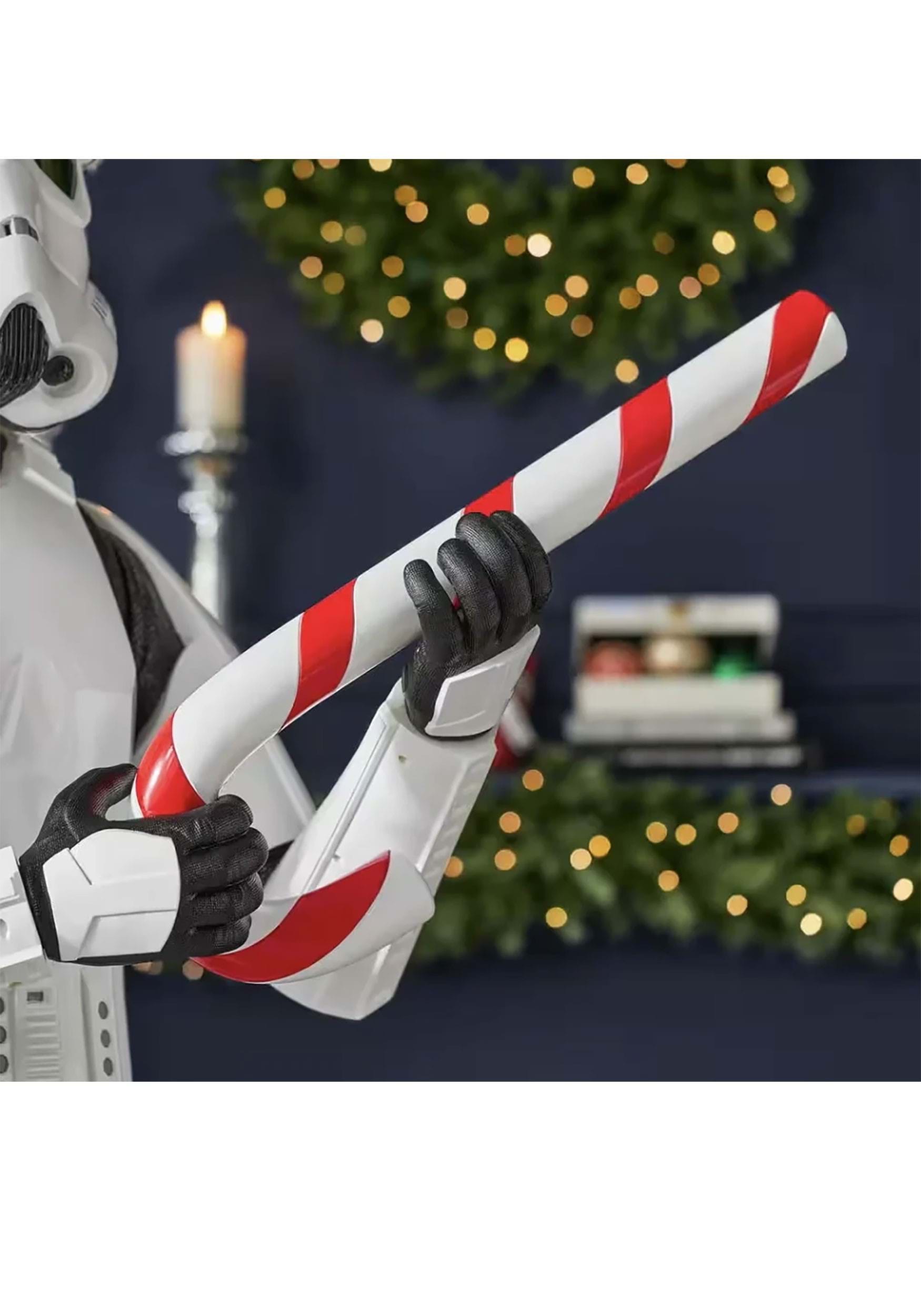 Customizable and fully posable at the shoulders, elbows, and wrists, this trooper can be armed with either a peppermint-striped candy cane or a Death Star-shaped candy bucket, depending on his mission. Whether he's doling out treats or standing guard, he's always ready to serve fun, Imperial style.