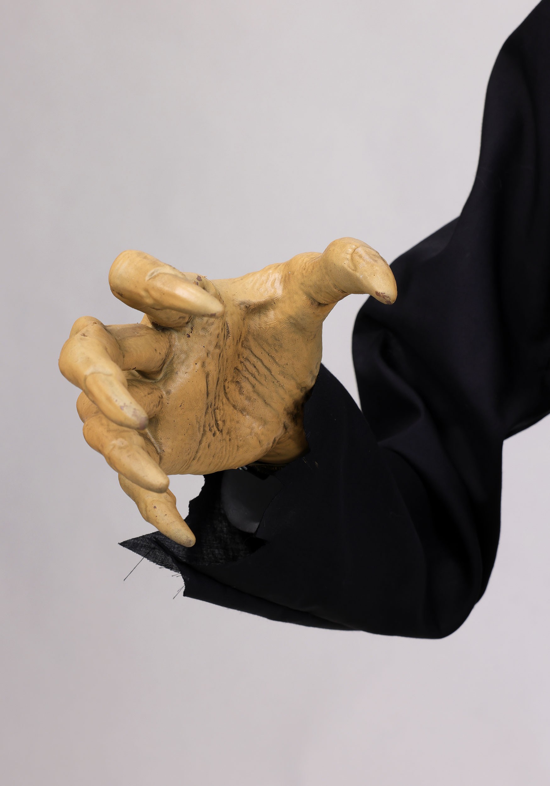 Glowing red eyes pierce through Gutfried's decayed visage while the candy bowl he clutches also radiates a sinister crimson light. These LED features create an atmospheric glow that draws attention even before the animatronic springs into action, setting an ominous mood that enhances any haunted scene. The lighting effects work in tandem with the mechanical movements to deliver a multi-sensory experience.