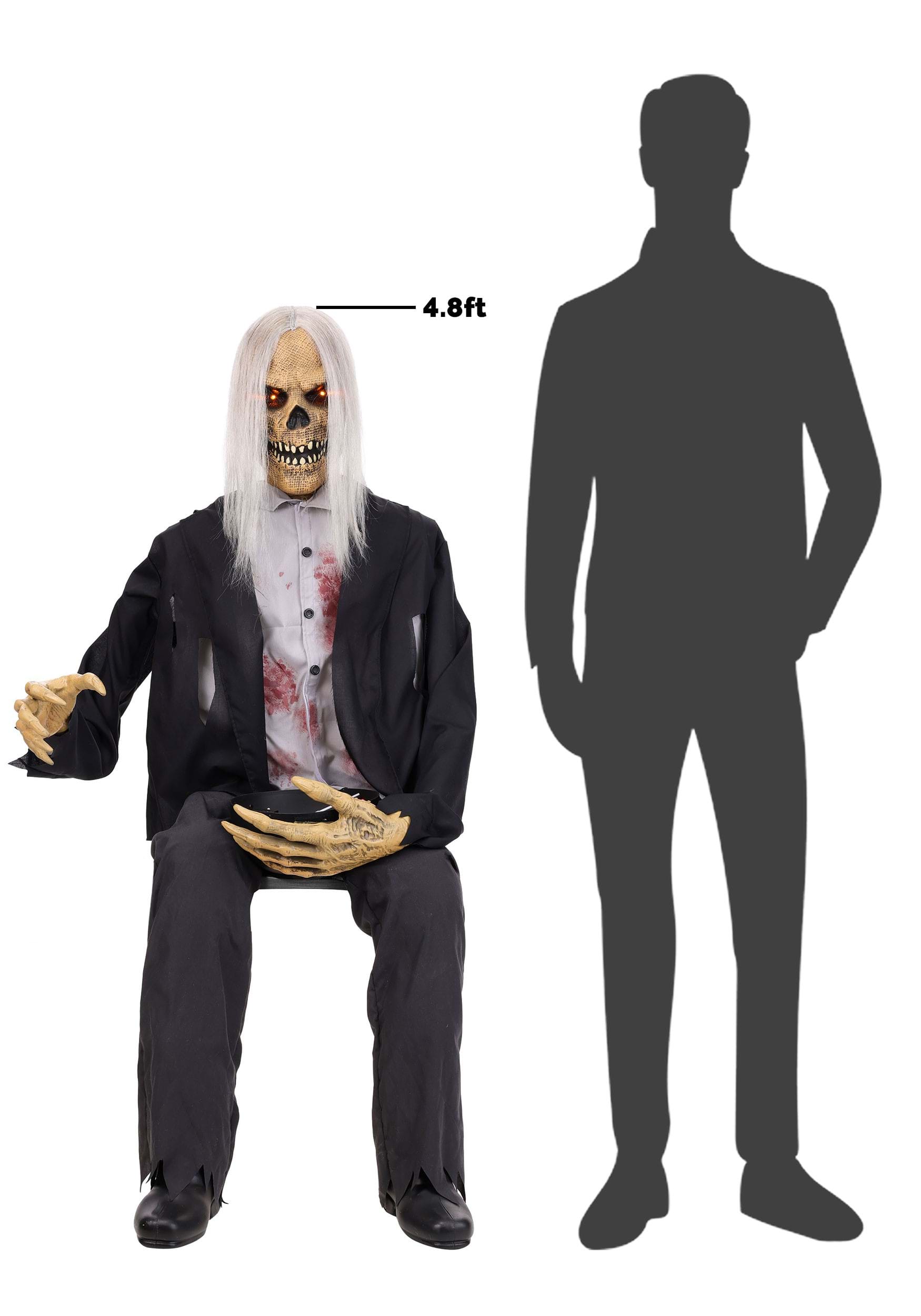 Grabby Gutfried isn't waiting for trick-or-treaters to come knocking—he's ready to spring into action the moment they approach. This seated zombie animatronic brings a graveyard encounter right to your doorstep or party space. With long, ghostly hair cascading over his decayed face and skeletal hands poised to swipe at unsuspecting guests, Gutfried creates an unforgettable Halloween experience that blends terror with interactive fun. Whether stationed on your porch or positioned inside your haunted setup, this 58-inch nightmare fuel adds both visual horror and startling movement to your seasonal display.
