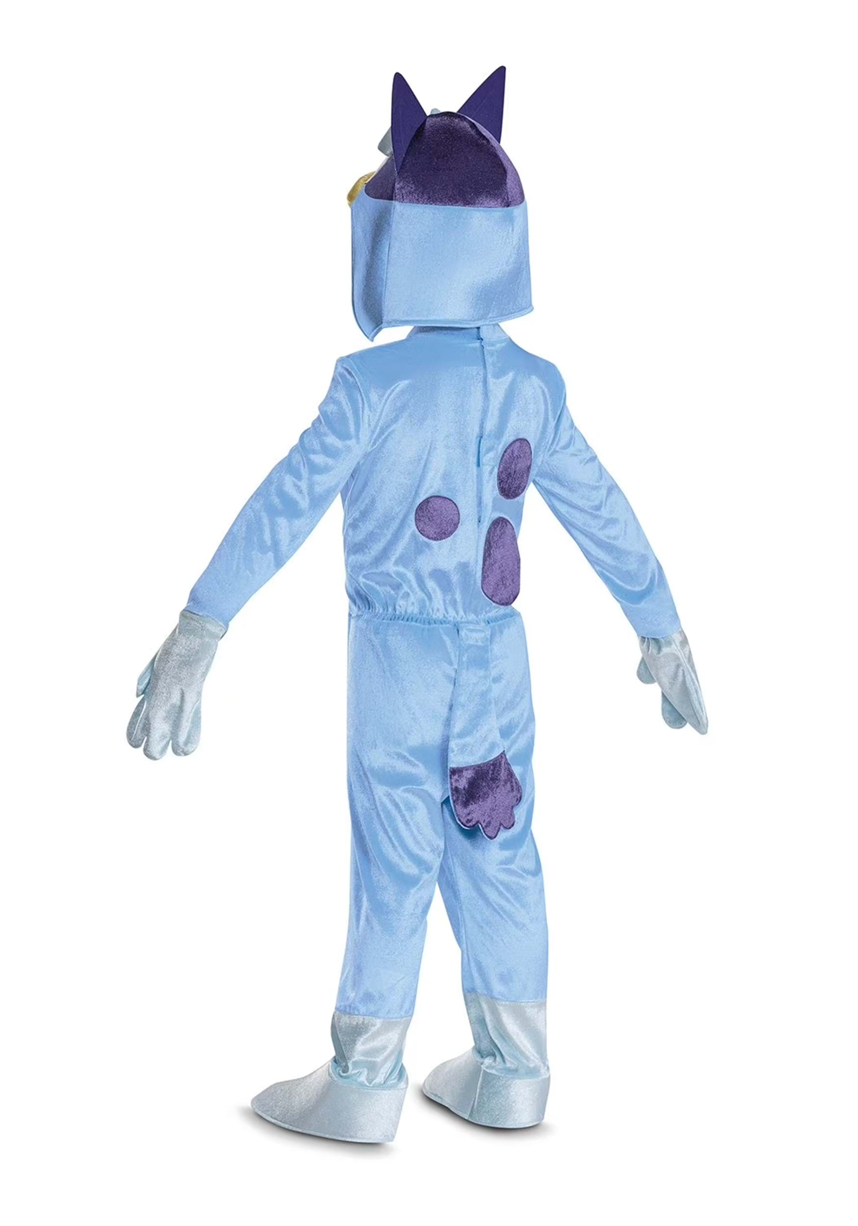 Top off the transformation with the oversized character hood, featuring Bluey's embroidered facial features and 3D accents. From her bouncy eyebrows to her curious ears and cheerful snout, the hood brings Bluey's playful personality to life in full color. It's the perfect finishing touch for a costume that's sure to spark giggles, games, and gleeful howls.