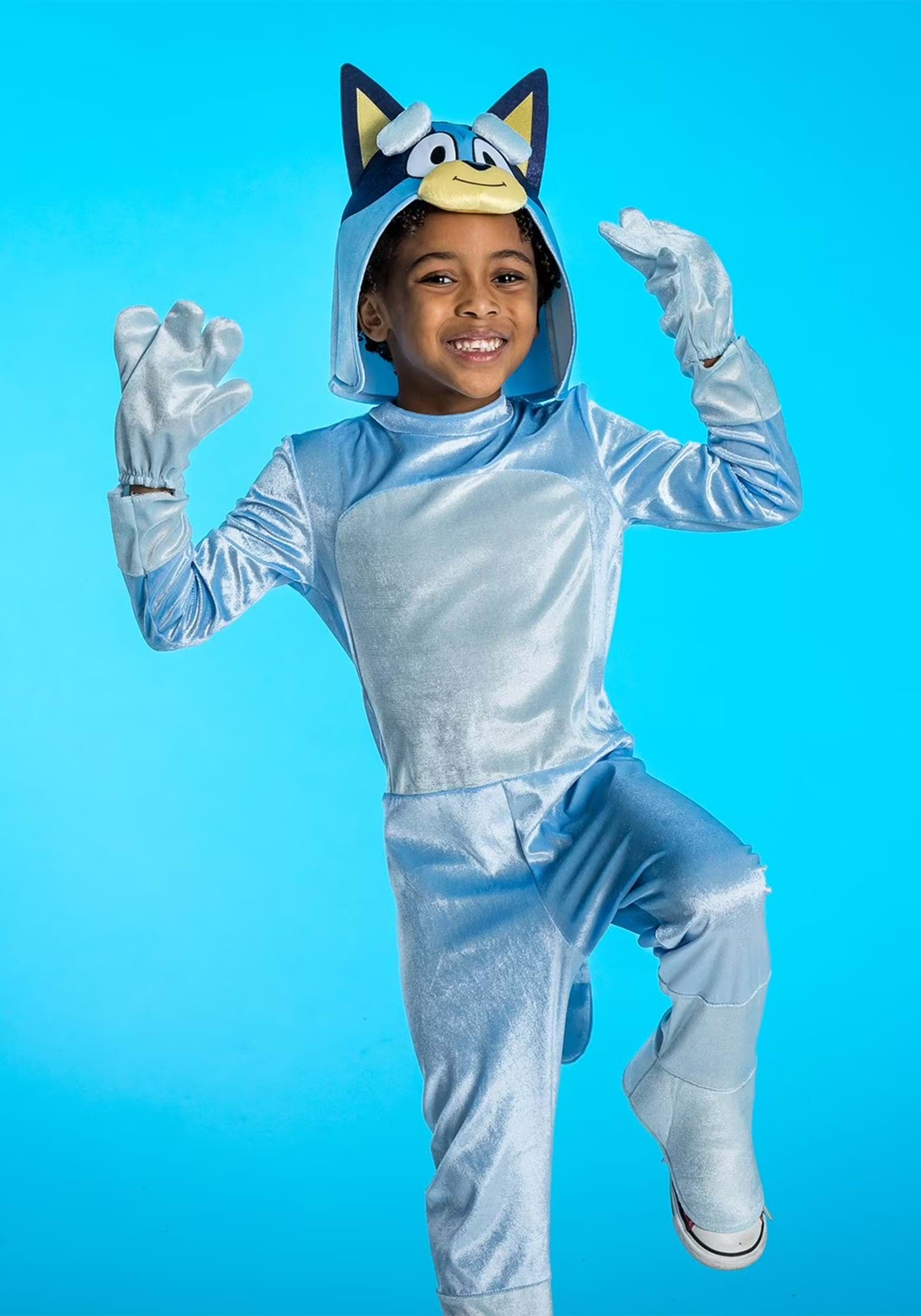 No need to fetch extra accessories—this outfit includes attached fold-back mitts and matching shoe covers to keep the Bluey illusion from head to toe. A soft tail attaches with hook-and-loop fasteners, swaying with every step to bring even more character and charm. It's all in the details, and this costume has them covered.