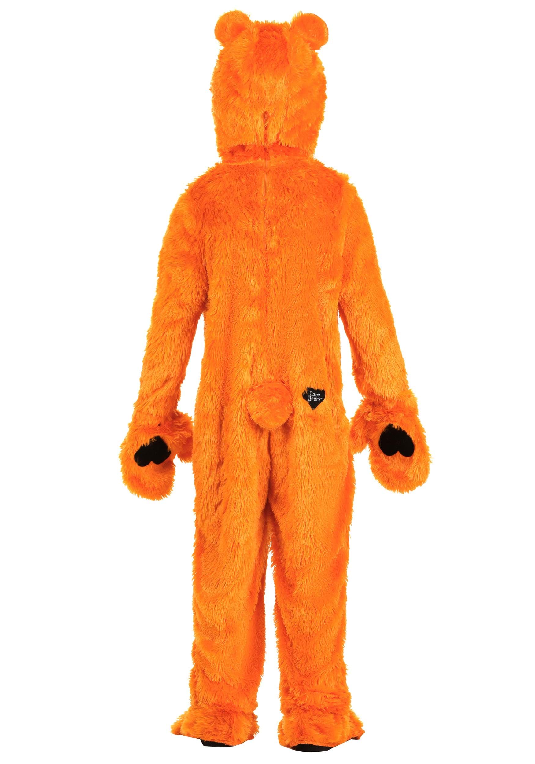 This full-body jumpsuit is a burst of bright orange fuzziness, complete with a cheerful jack-o'-lantern tummy badge front and center. With a zipper down the back for easy dressing, the suit is designed with comfort and fun in mind. A sweet Care Bears logo adorns the backside, adding an authentic touch that fans will love. The attached hood features an embroidered bear face with soft-sculpted ears and a plush nose—bringing Trick or Sweet Bear to life in the most adorable way imaginable.