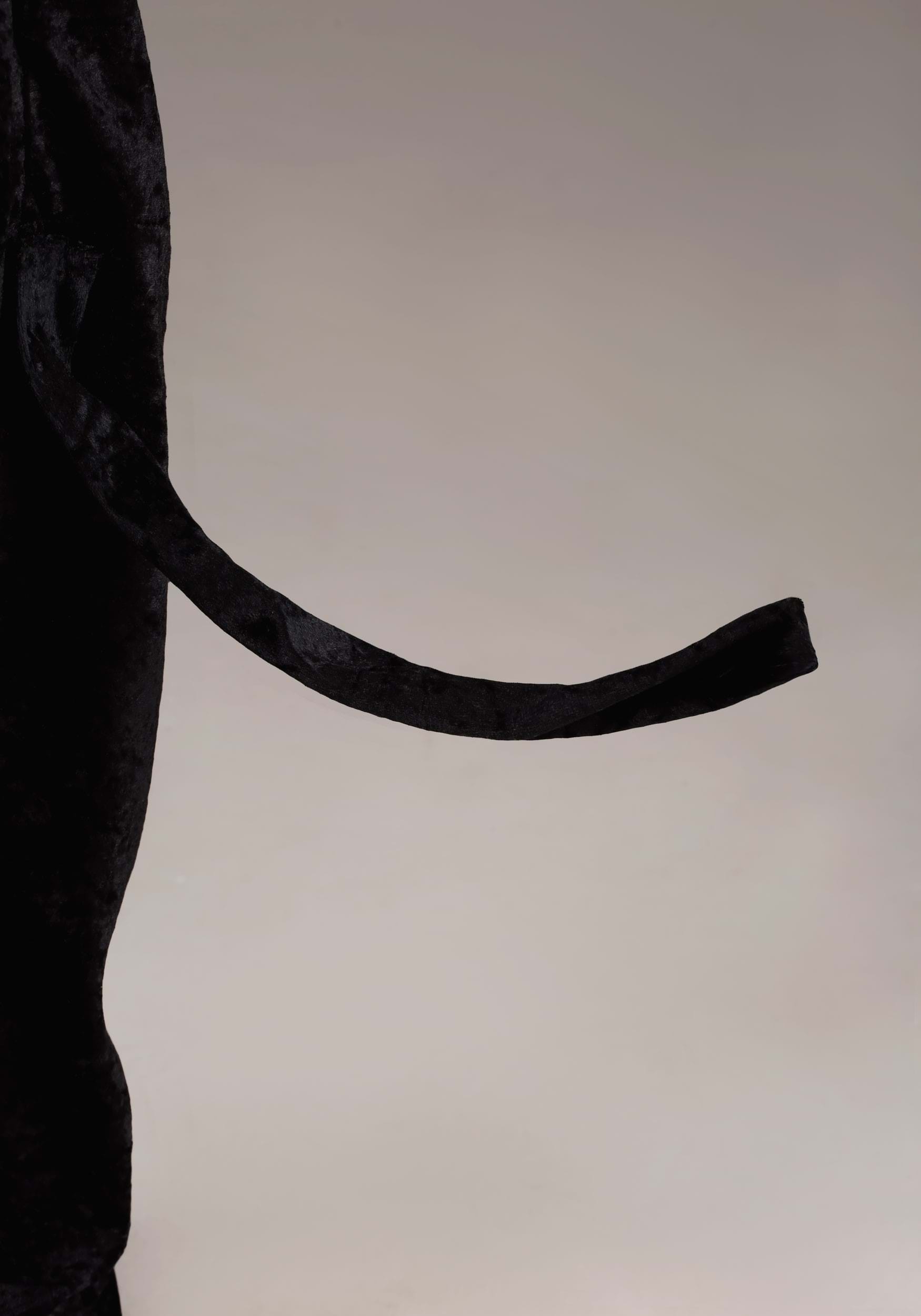 The crushed velvet jumpsuit features a convenient hook and loop fastener at the center back, making it easy for your little one to slip into character. The front of the jumpsuit showcases a white plush fabric inset with a sewn-on red felt bow tie, adding a touch of charm to this already delightful ensemble.