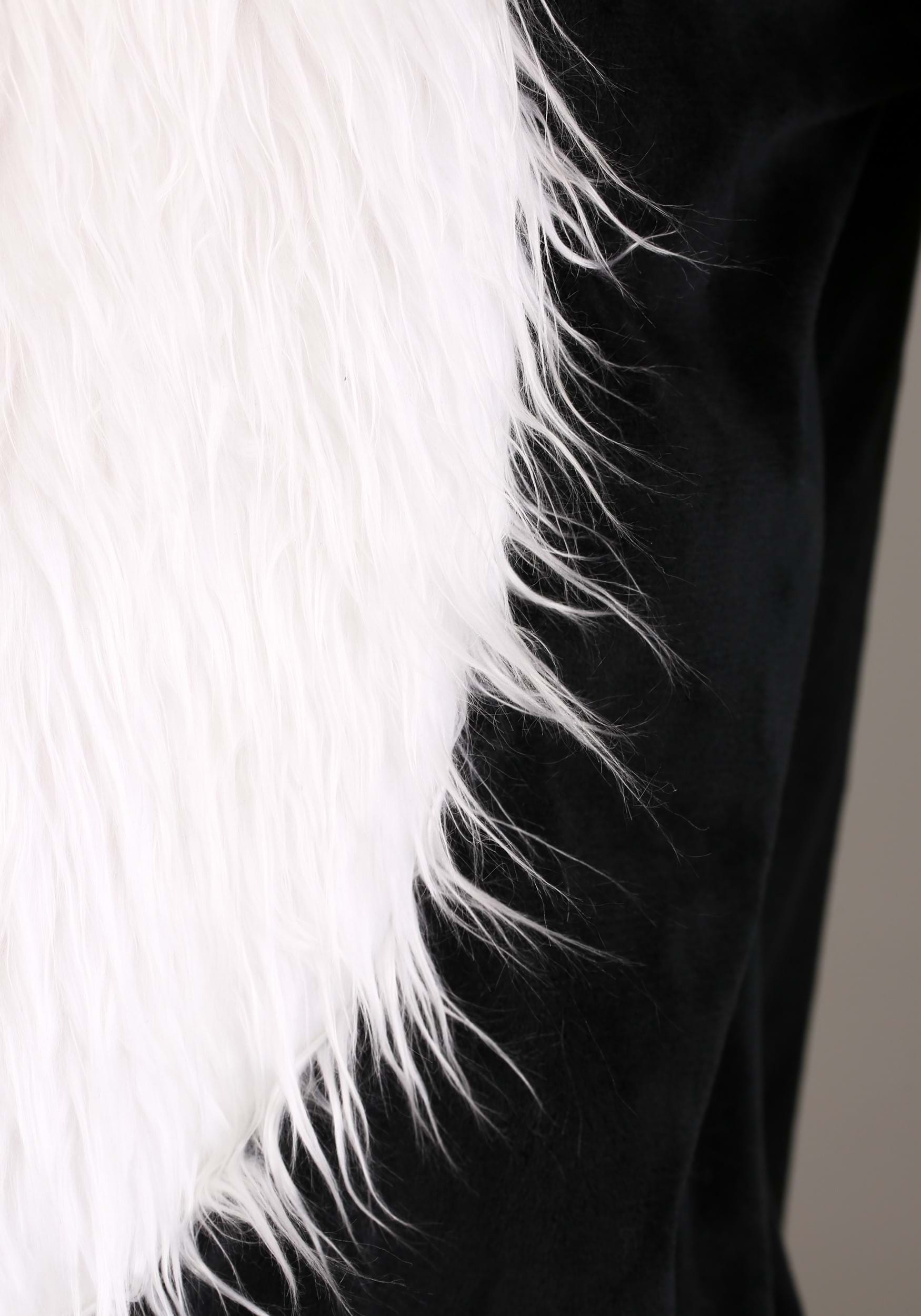 Crafted with the utmost attention to detail, this costume is made from 100% polyester velour fabric and faux fur, ensuring a comfortable and durable fit. The jumpsuit features a convenient hook and loop fastener at the center back, making it easy to slip on and off. The velour fabric is soft to the touch, while the faux fur belly inset adds a touch of luxuriousness to your feline ensemble.