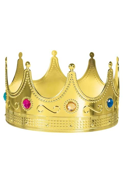 Crafted from lightweight plastic with a brilliant metallic gold finish, this crown captures the classic silhouette of high royalty. Faux gemstones in a variety of rich, vibrant colors line the crown’s peaks and add an eye-catching touch worthy of kings, queens, and cunning royal advisors alike.