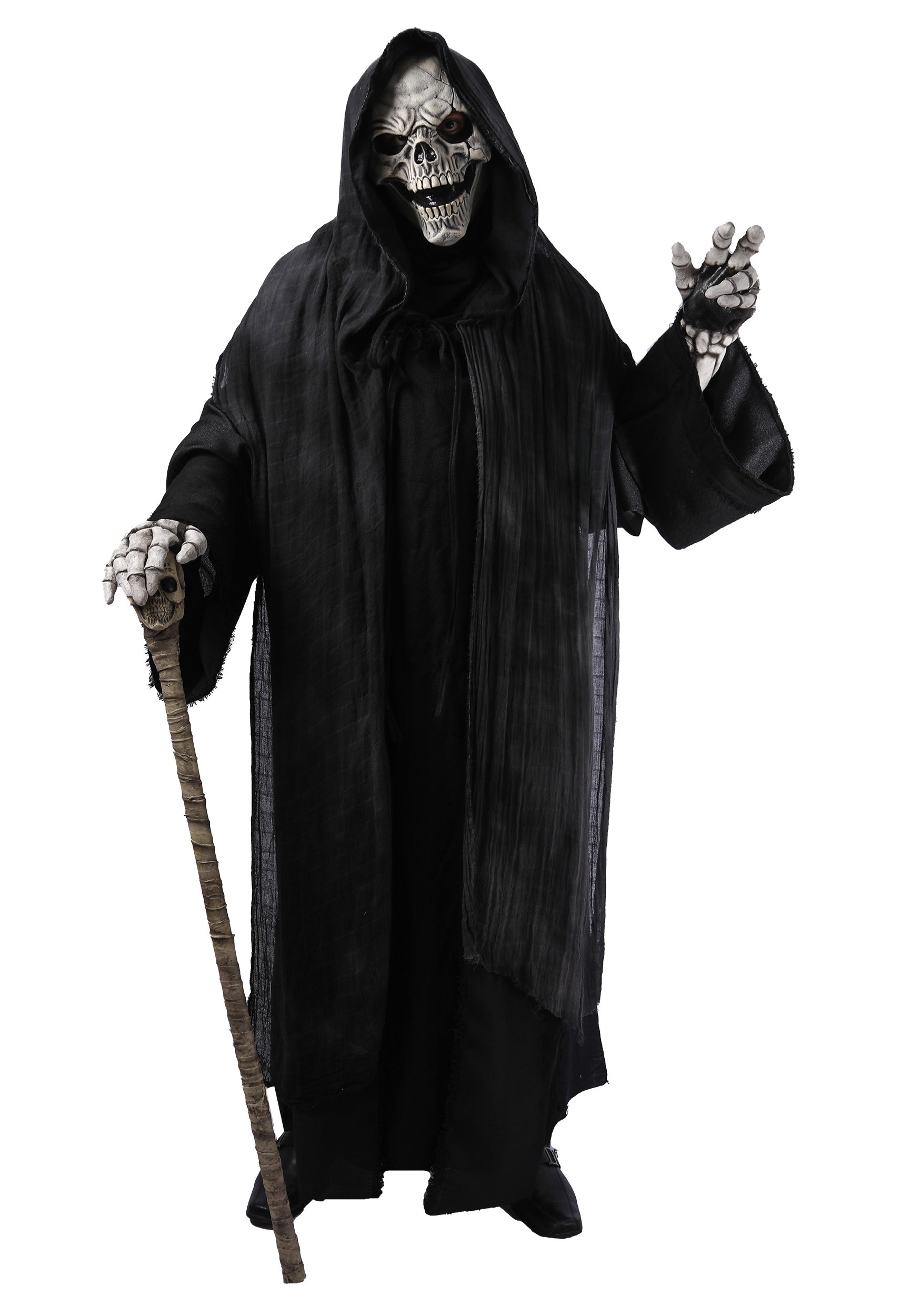 Adult Dark Reaper Costume Coat with Skull Mask and Skeleton Gloves