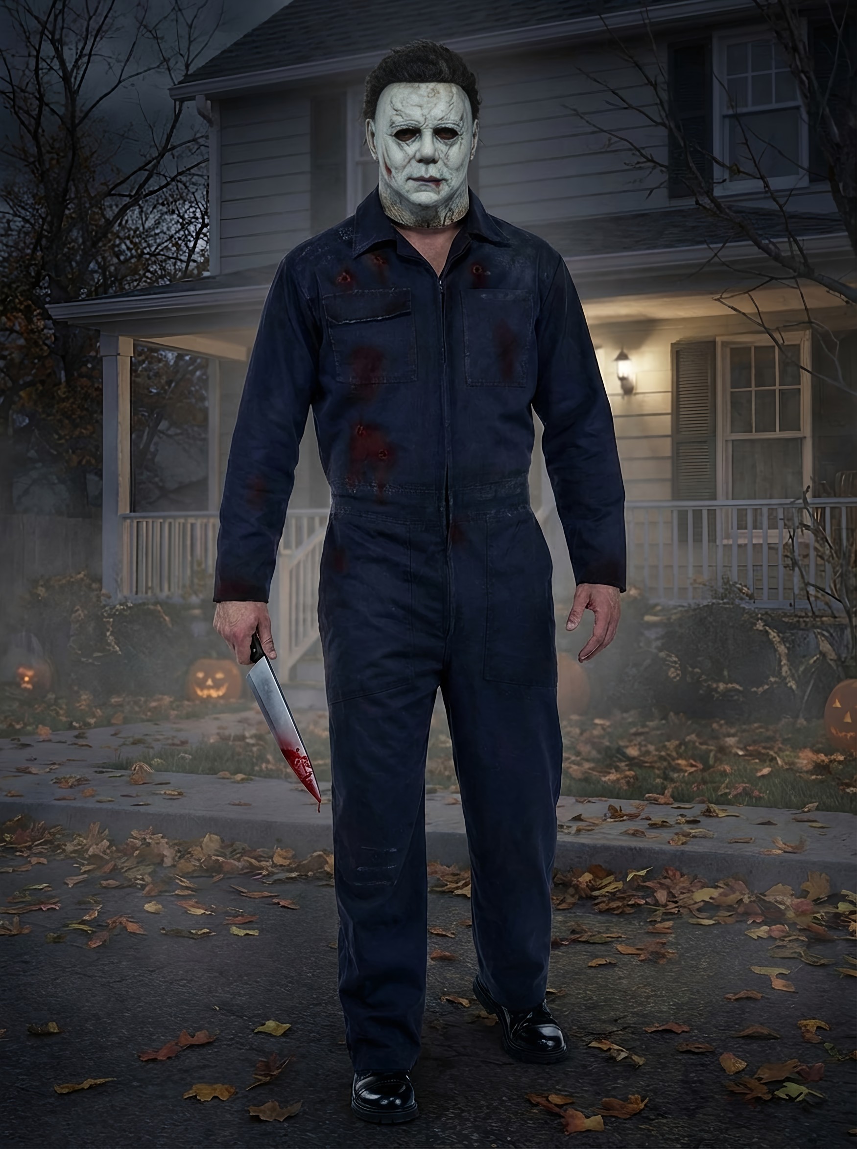 The coveralls are as functional as they are creepy, featuring multiple pockets on the chest and legs. Perfect for carrying tools—whether you're planning on working under the hood or wielding something far more chilling. Whether it's a wrench, flashlight, or perhaps a menacing prop, this costume gives you plenty of space to stash whatever you need to play the part.