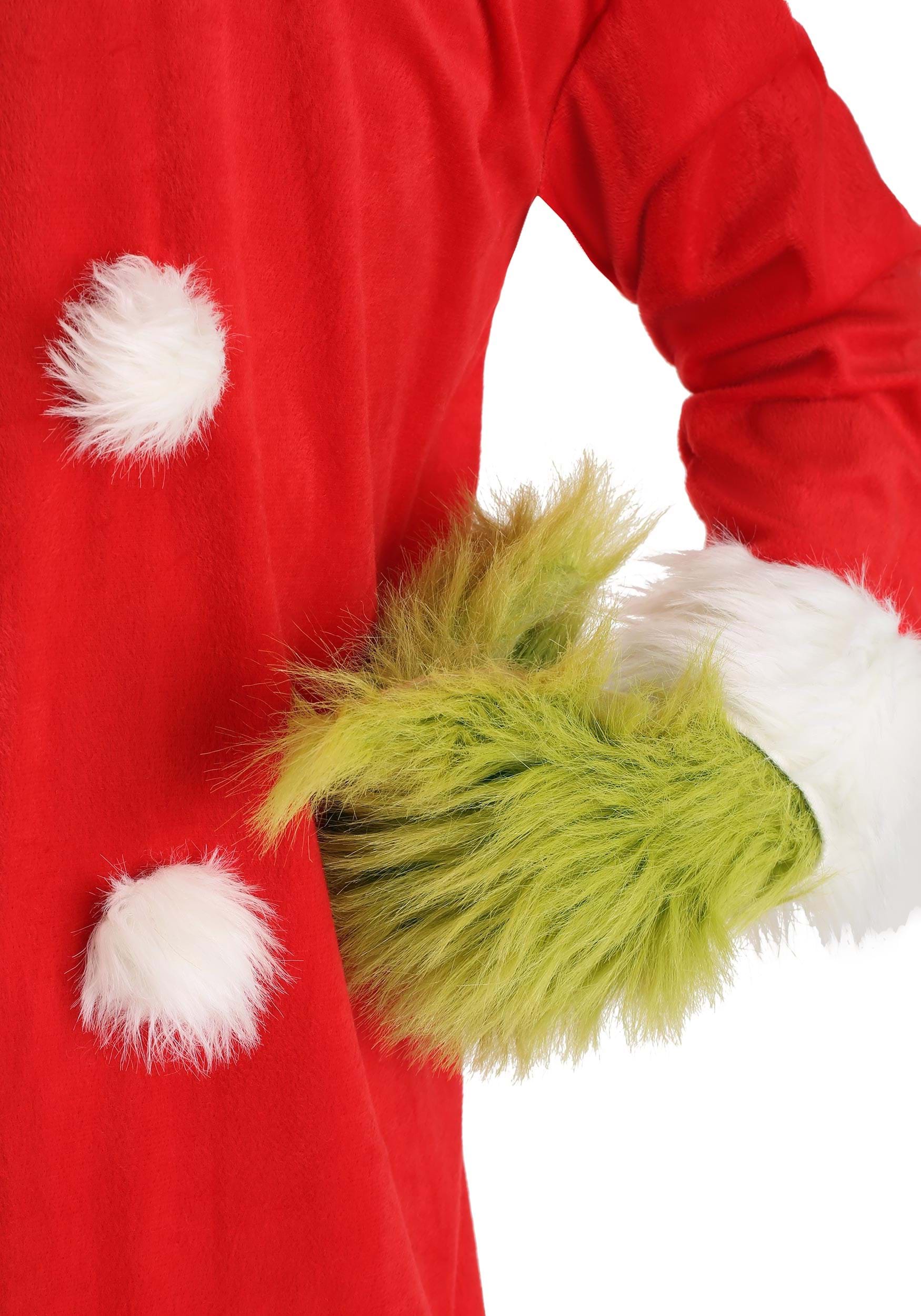To truly become the Grinch, this costume includes green faux fur gloves and a hat with fur edging and a pompom at the tip. These accessories add the perfect finishing touches to your Grinch ensemble, making you look like you just stepped out of Whoville.