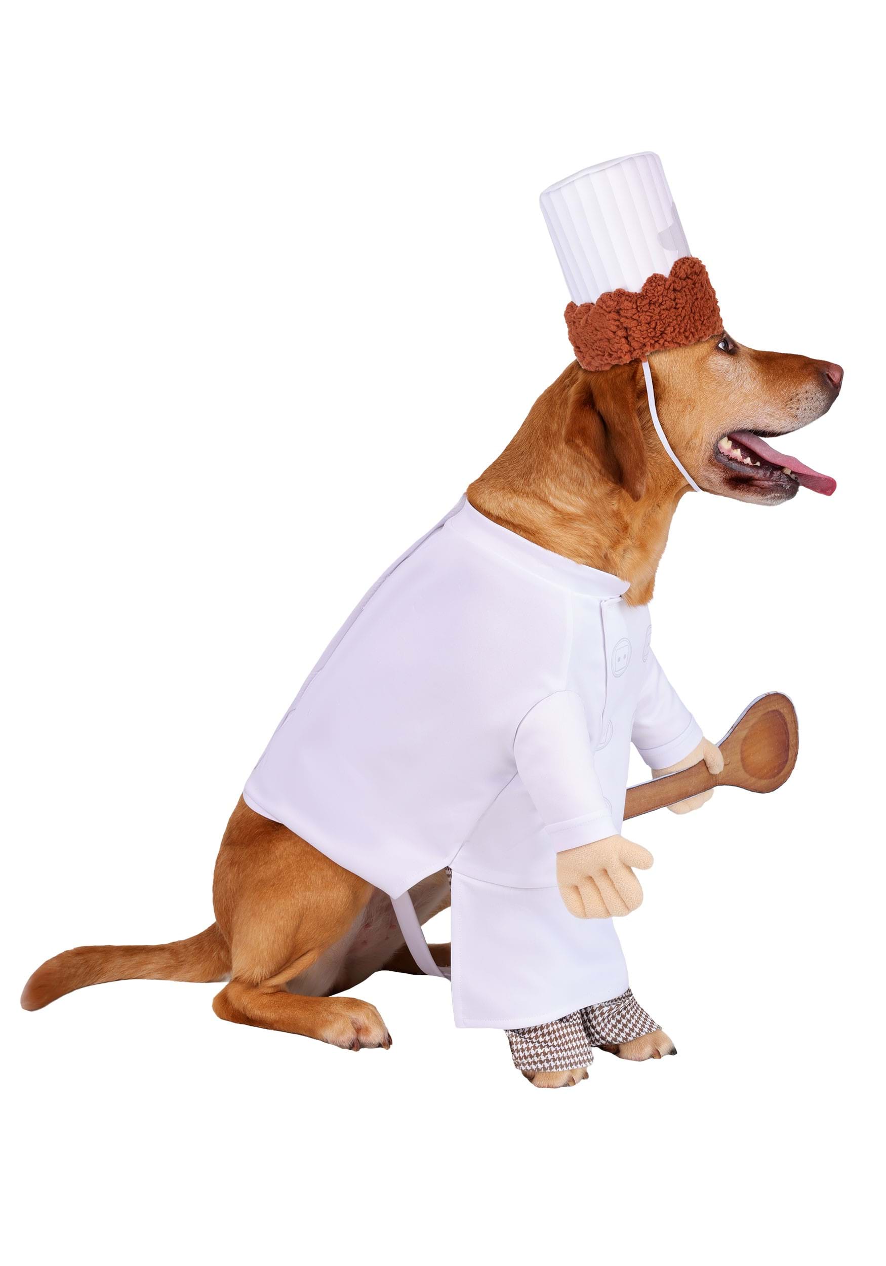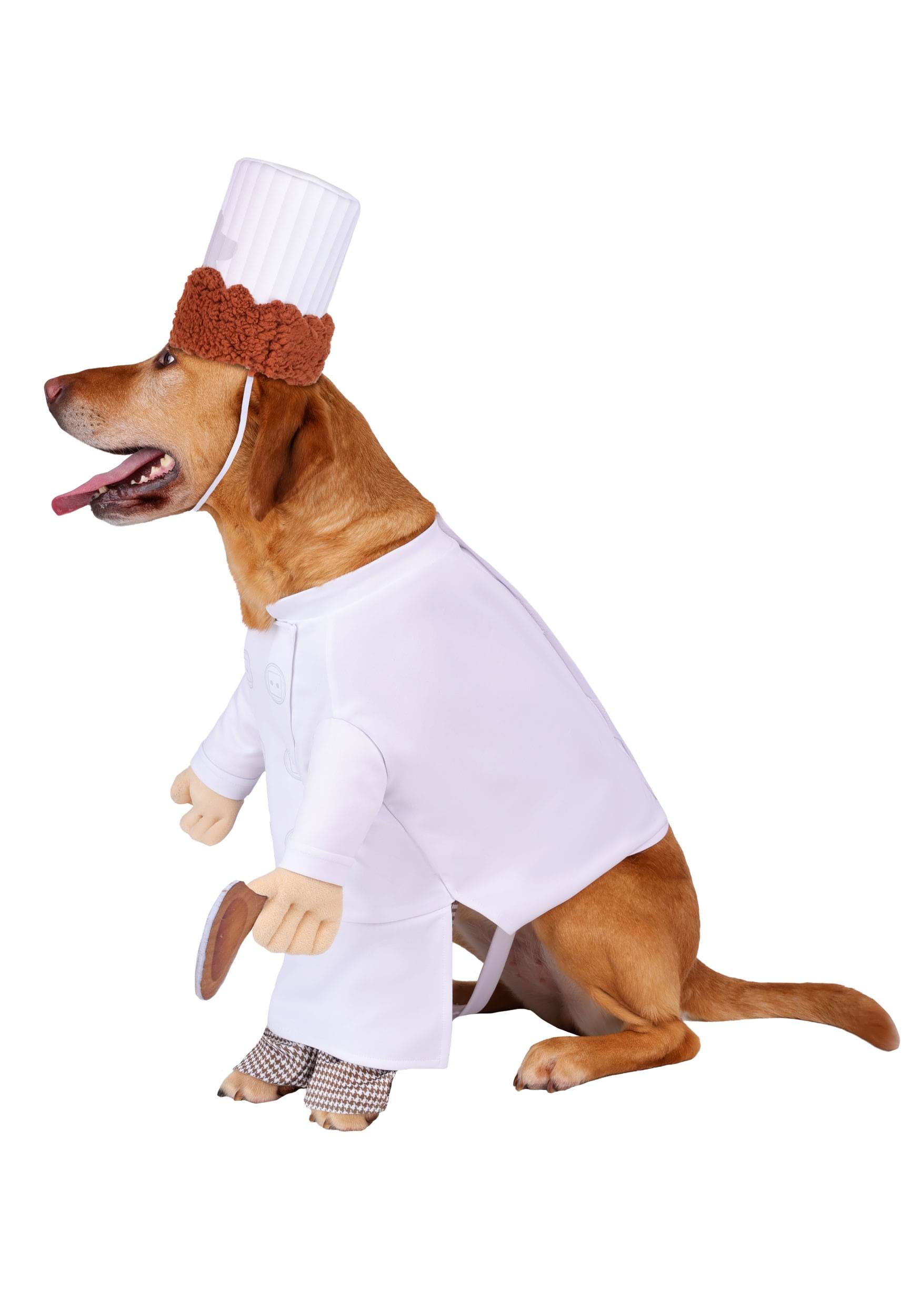 Designed with lightweight comfort in mind, the costume features a printed tunic with faux arms, a stitched-on spoon, and attached pant panels to complete the chef look. It secures at the back for fuss-free dressing. The foam chef's hat stays in place with a soft elastic cord and is topped with a tuft of curly sherpa "hair," giving your pet the unmistakable look of Alfredo himself!