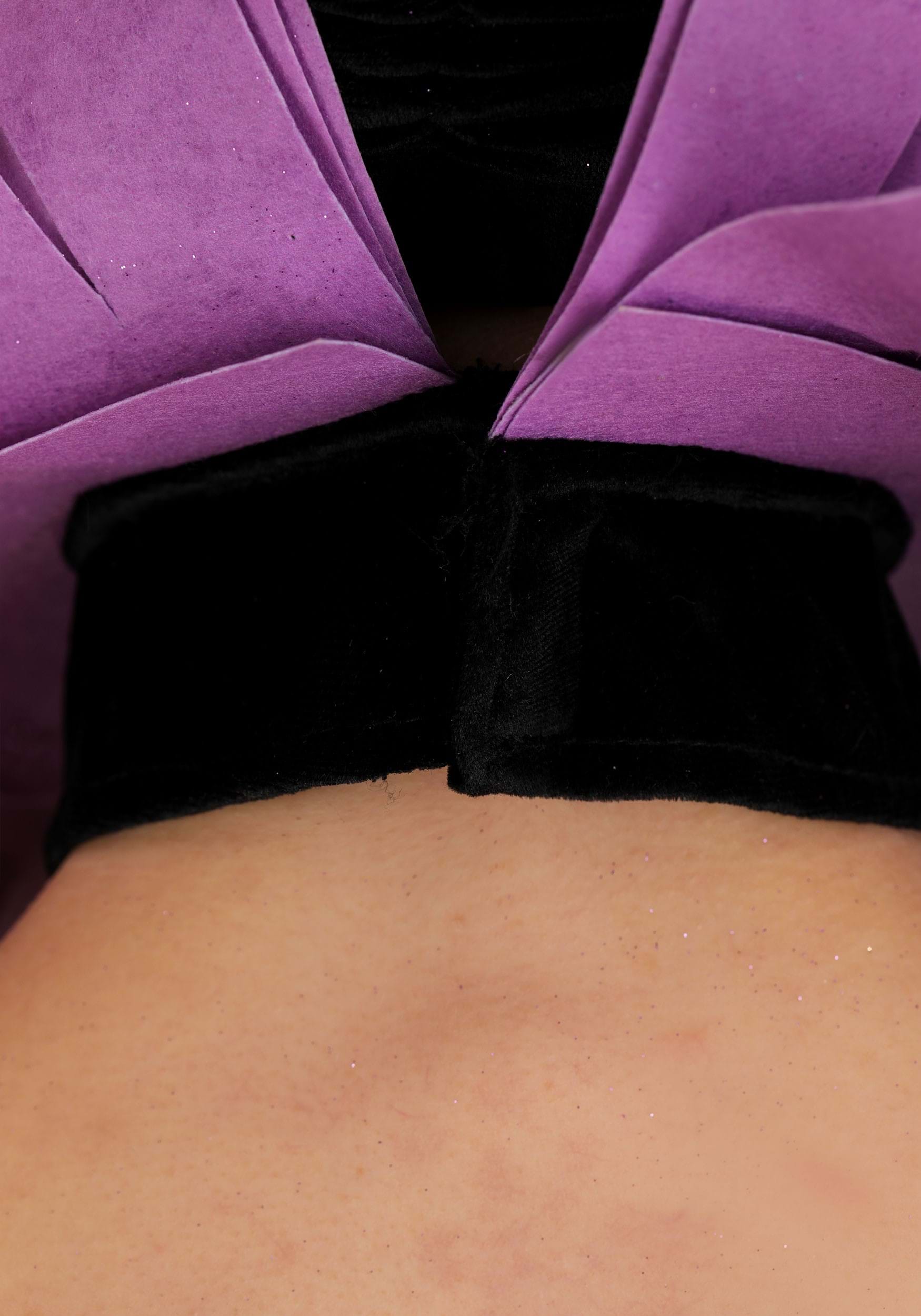 - Velvet and glitter felt collar has boning structure, hook and loop fastener on the back