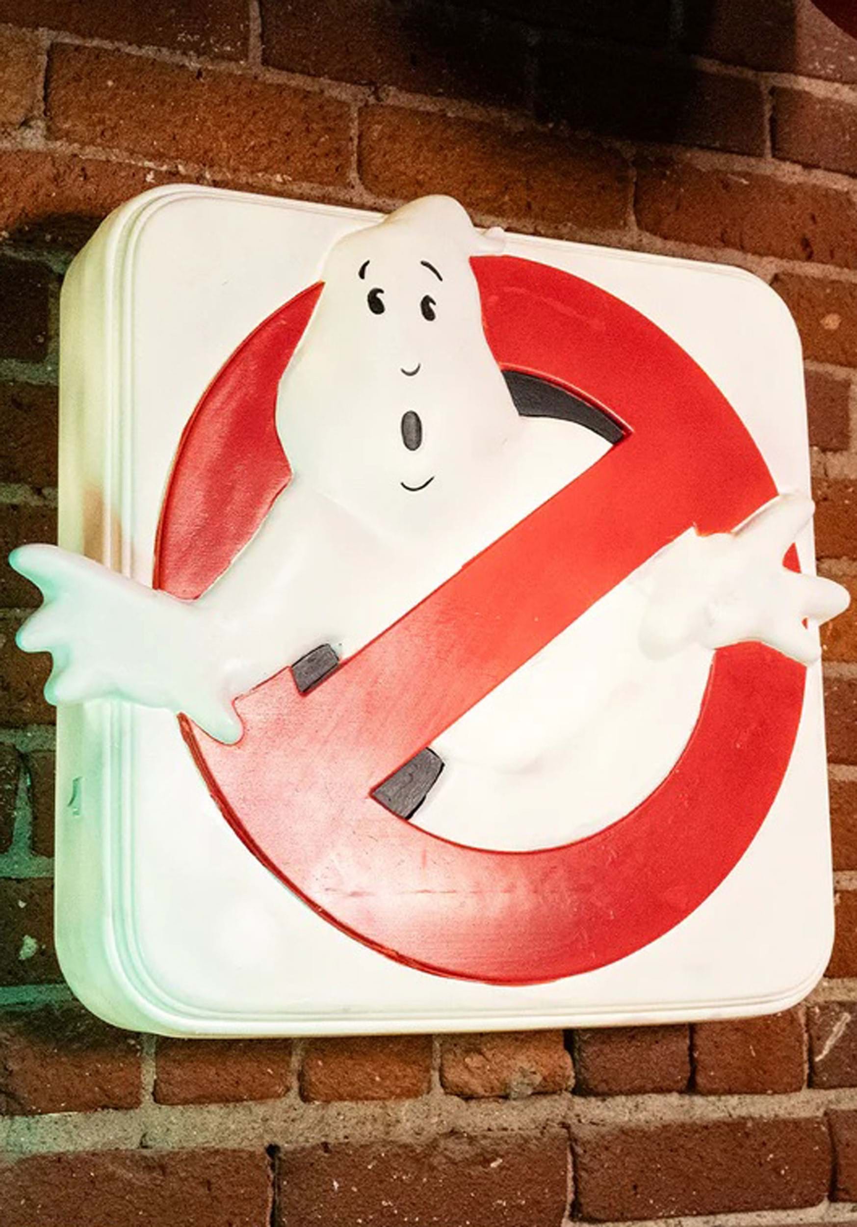Measuring approximately 22 inches wide by 20 inches tall and 4 inches deep, the sign is made from durable blow mold plastic and features a built-in light for an eye-catching display. When lit, the ghost figure and red slash stand out with vivid brightness, casting a glow as legendary as the Ghostbusters themselves.