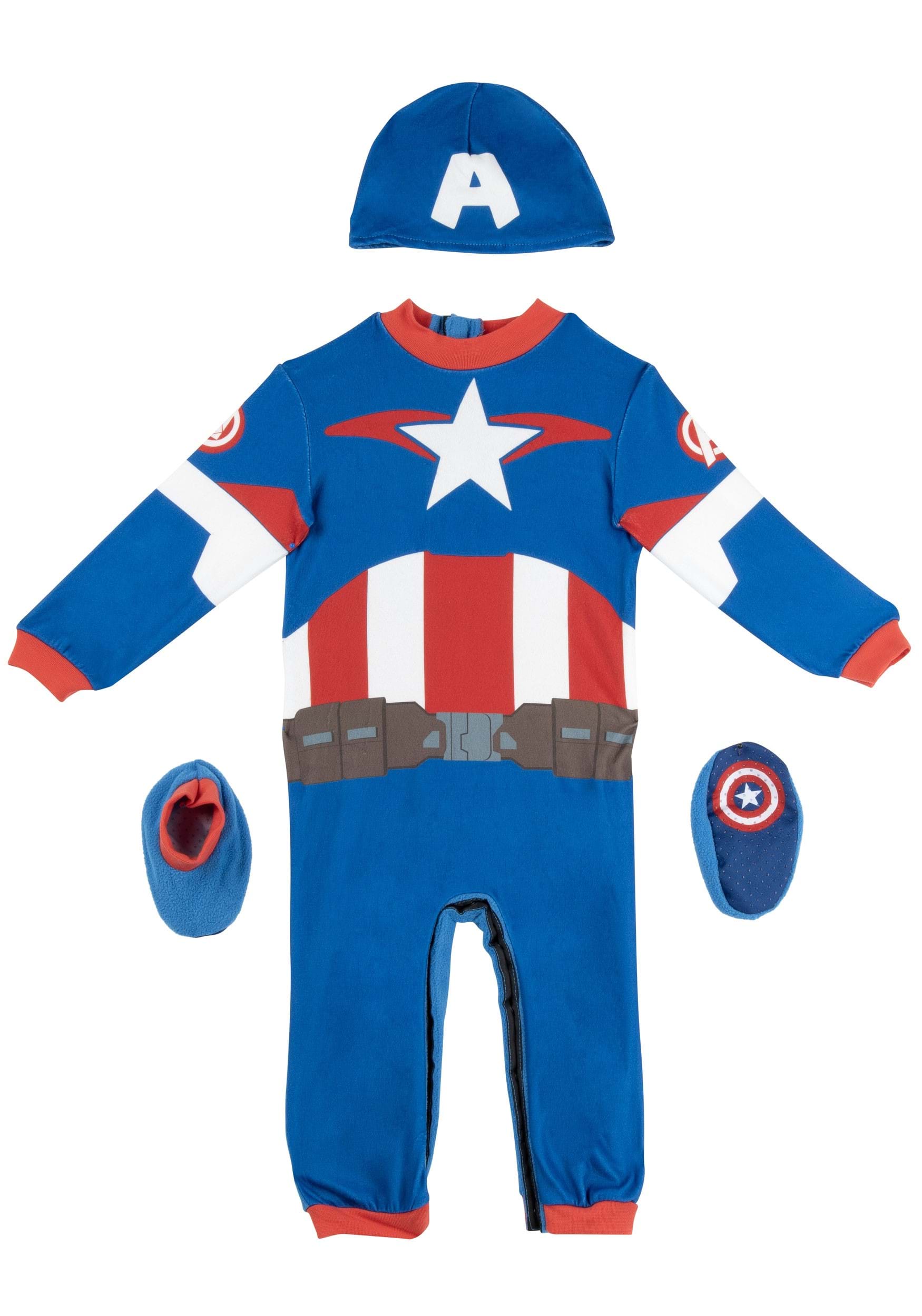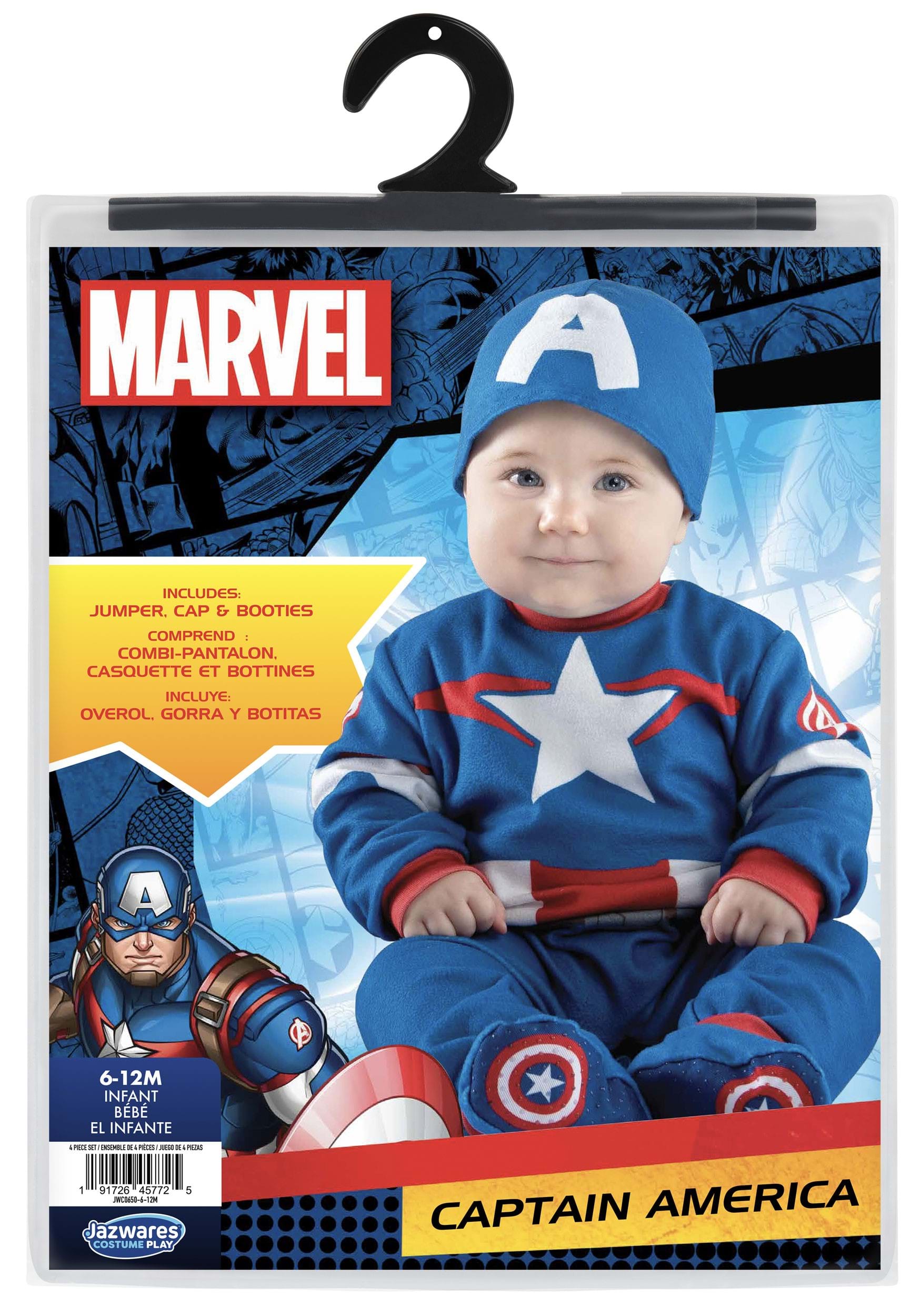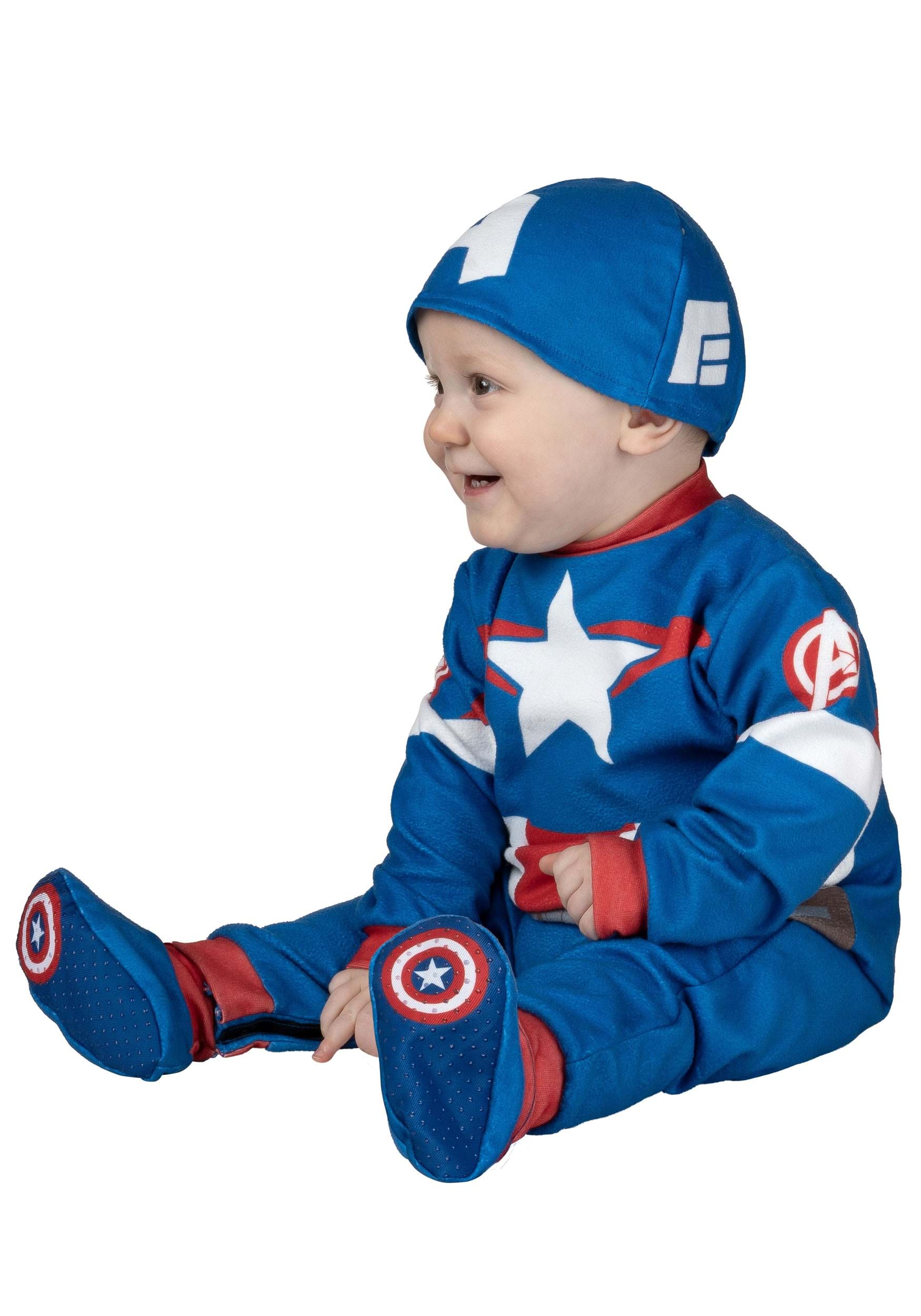 Calling all mini superheroes! It's time to assemble and save the day in this adorable Infant Captain America Steve Rogers Costume. Made from 100% polyester velour and fleece fabrics, this costume is as comfortable as it is heroic.