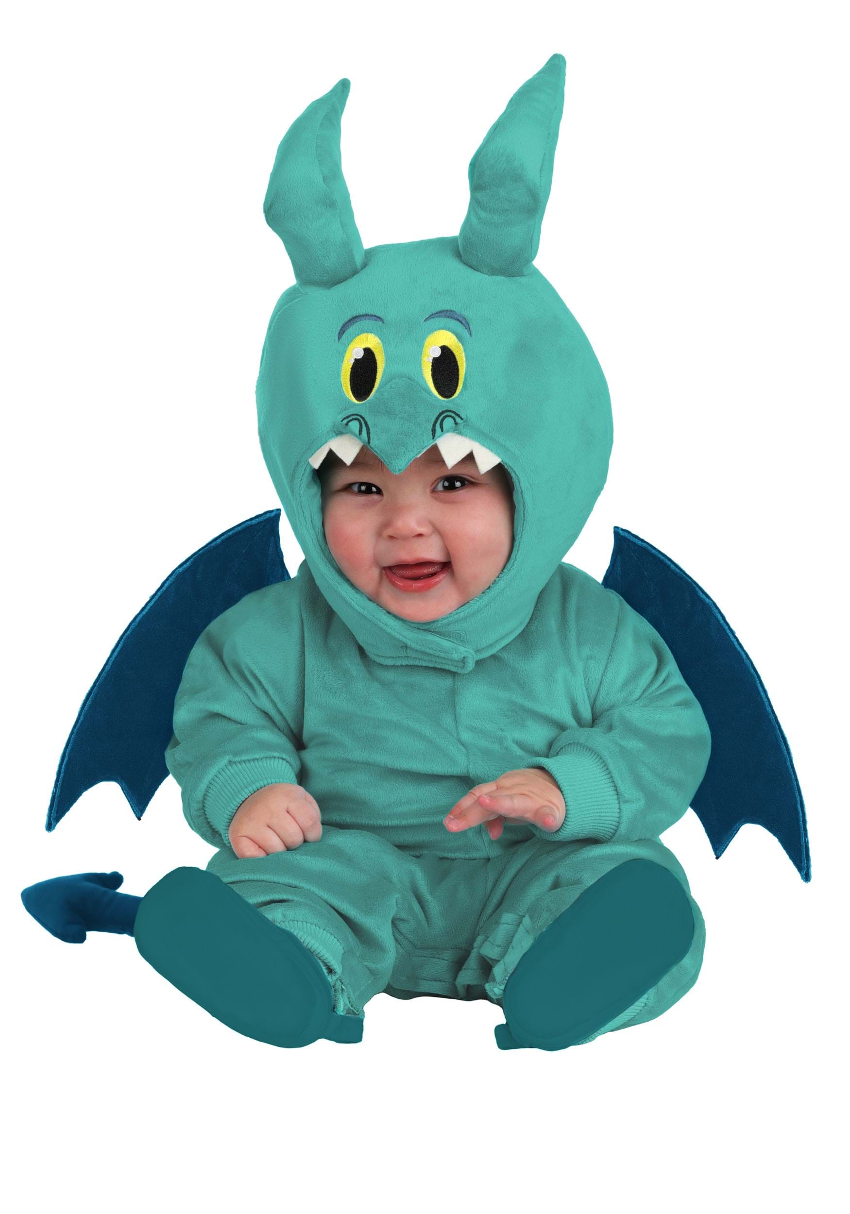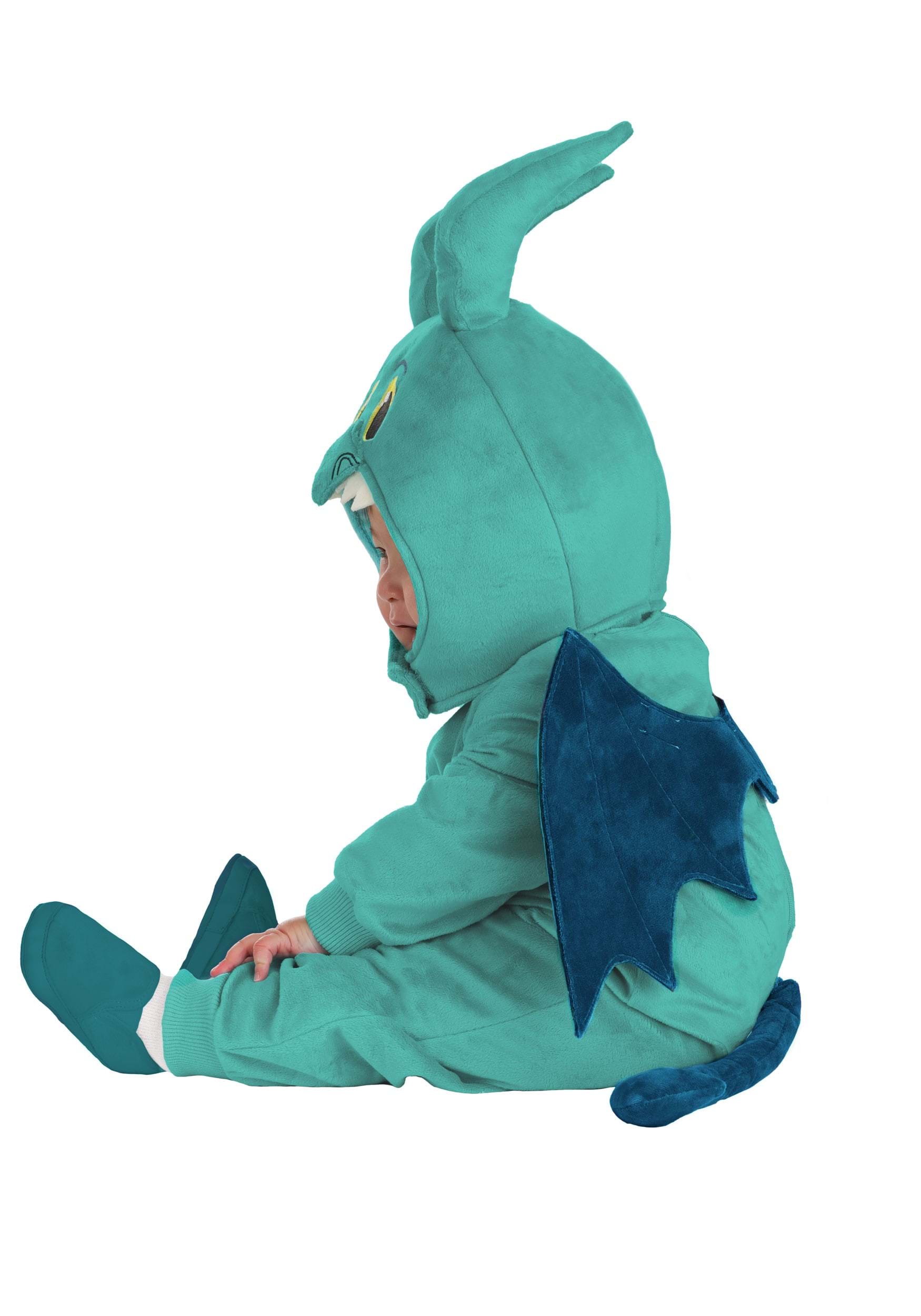 The teal plush jumpsuit zips in the back for easy dressing, while rib-knit cuffs ensure your little one stays snug. Snap openings make changes simple, and the attached tail and hook-and-loop wings add delightful touches of Panic's wild personality. The headpiece, featuring embroidered facial details, a soft-sculpted nose, and horns, completes the look for your tiny, frantic sidekick!