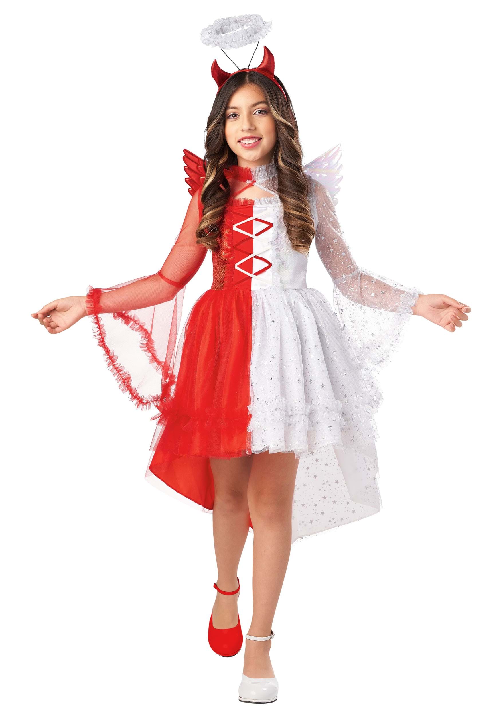 Whether they're a perfect blend of sweet and mischievous or simply can't decide between the trickster and saint for Halloween, our Angelic Devil Costume dress and accessories have your kiddo covered. Order the easy-to-wear half-angel, half-devil, and totally playful costume to treat your kiddo to an exclusive style that promises tons of Halloween and playtime fun!