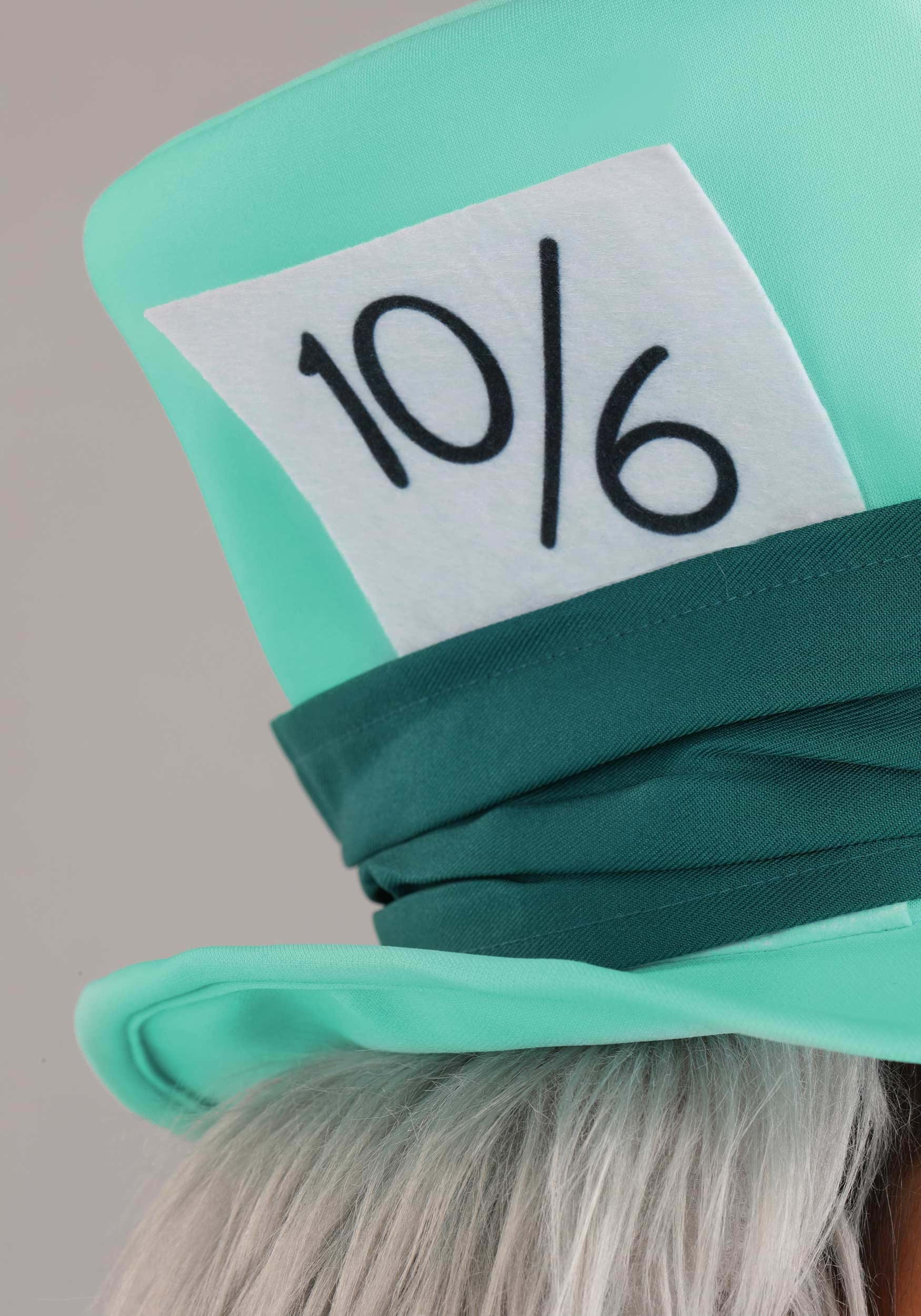 This dapper design includes three clever pieces that ensure quick and easy dressing. Pull-on straight-leg pants with an elastic waistband start the outfit. The top is a combo piece featuring a structured duster jacket and a vest panel stitched into the left inner jacket seam that secures to the right side with hook and loops. A foam-backed hat with the Hatter's signature price card finishes the look.