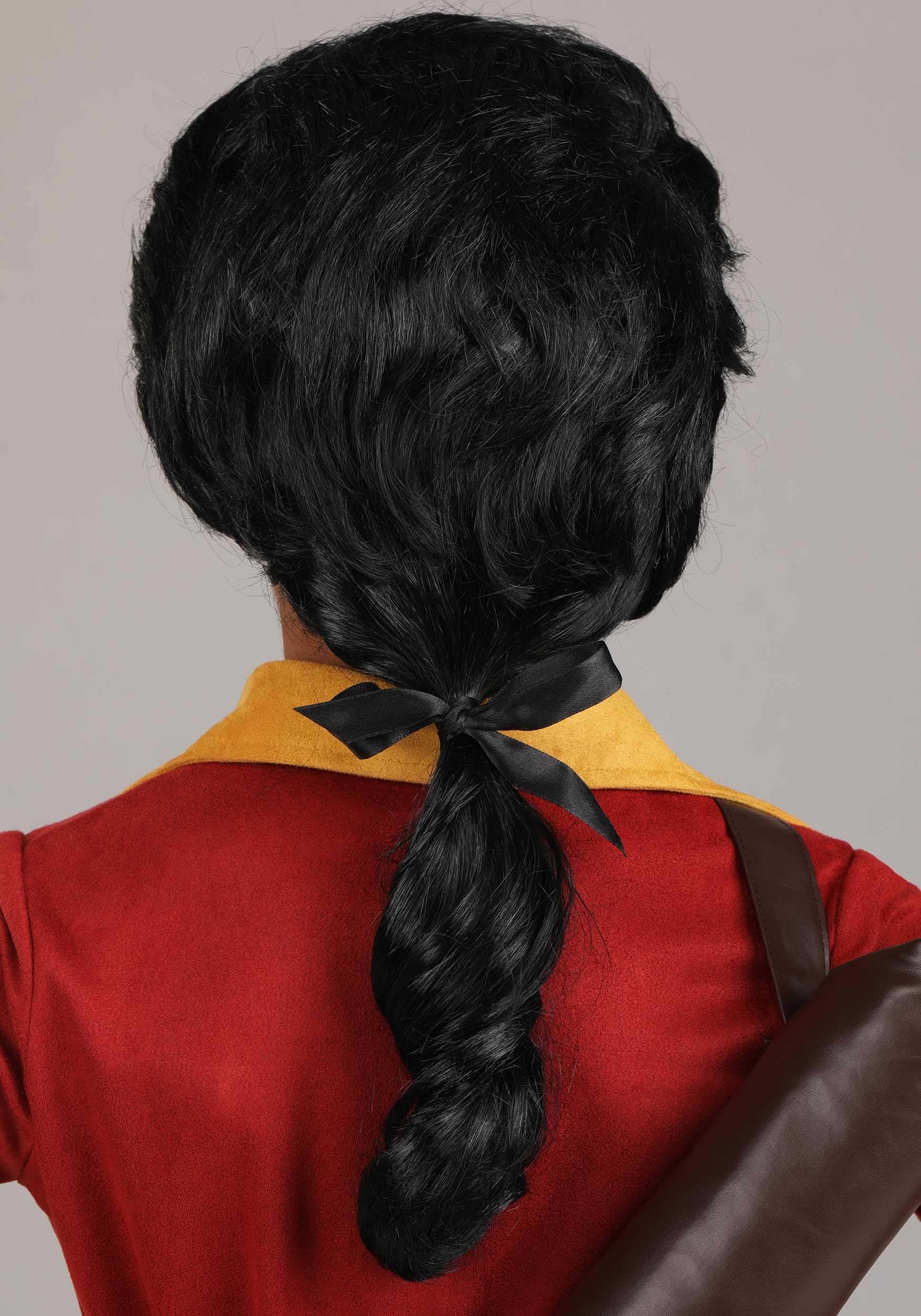 - Faux hair wig with an elastic band to secure on head is styled like Gaston's hair