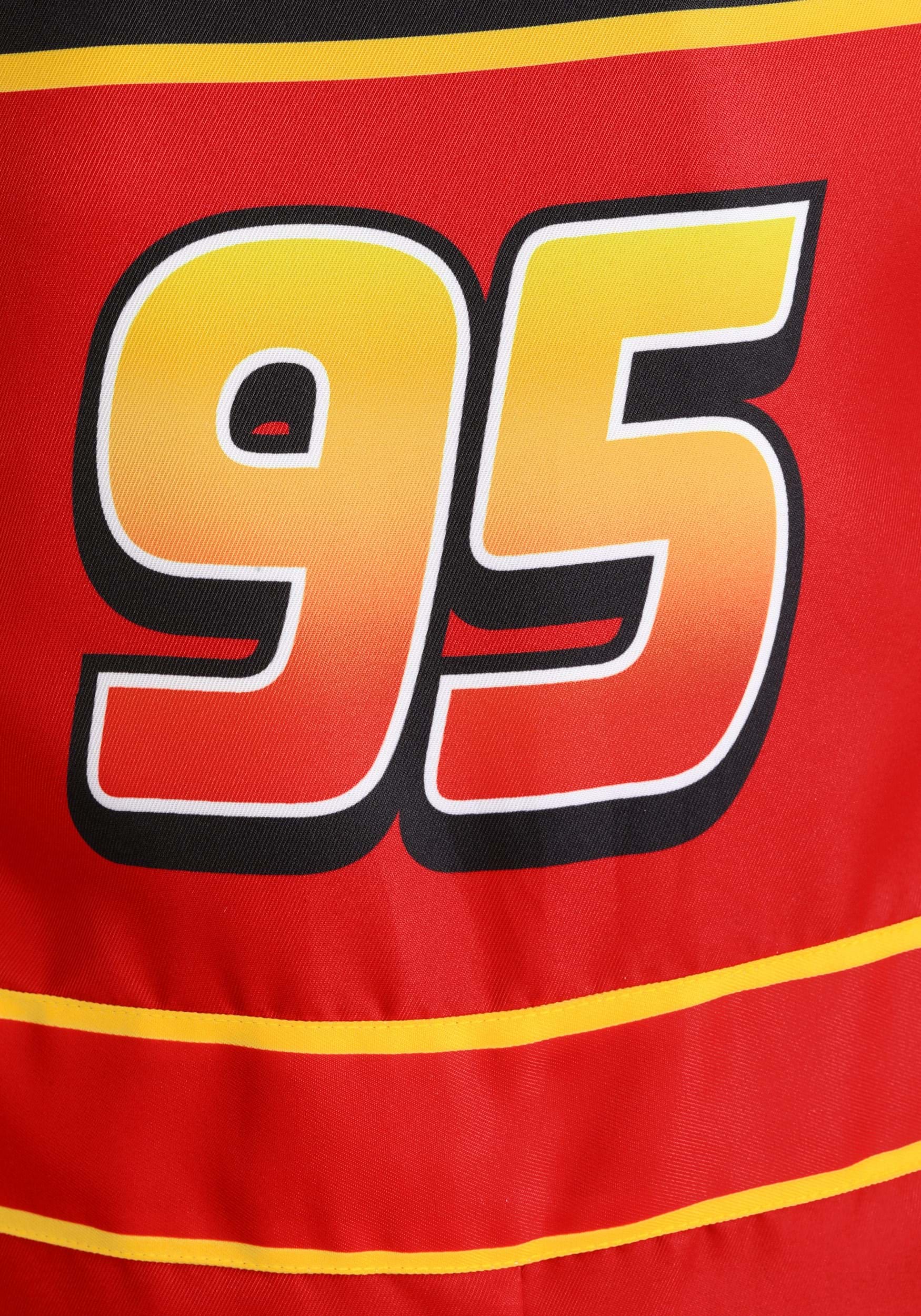 This licensed outfit is ready to complete your Cars group costume, and it does it as quickly as you'd expect from a pit crew! The 100% polyester jumpsuit features a hook-and-loop fastener and attached belt for easy dressing. Knee pads and a high collar offer additional comfort for playtime and protection from chilly Halloween weather. Meanwhile, printed graphics including a full-color Lightning McQueen on the chest and checkers along the sleeves give the costume a sharp look.