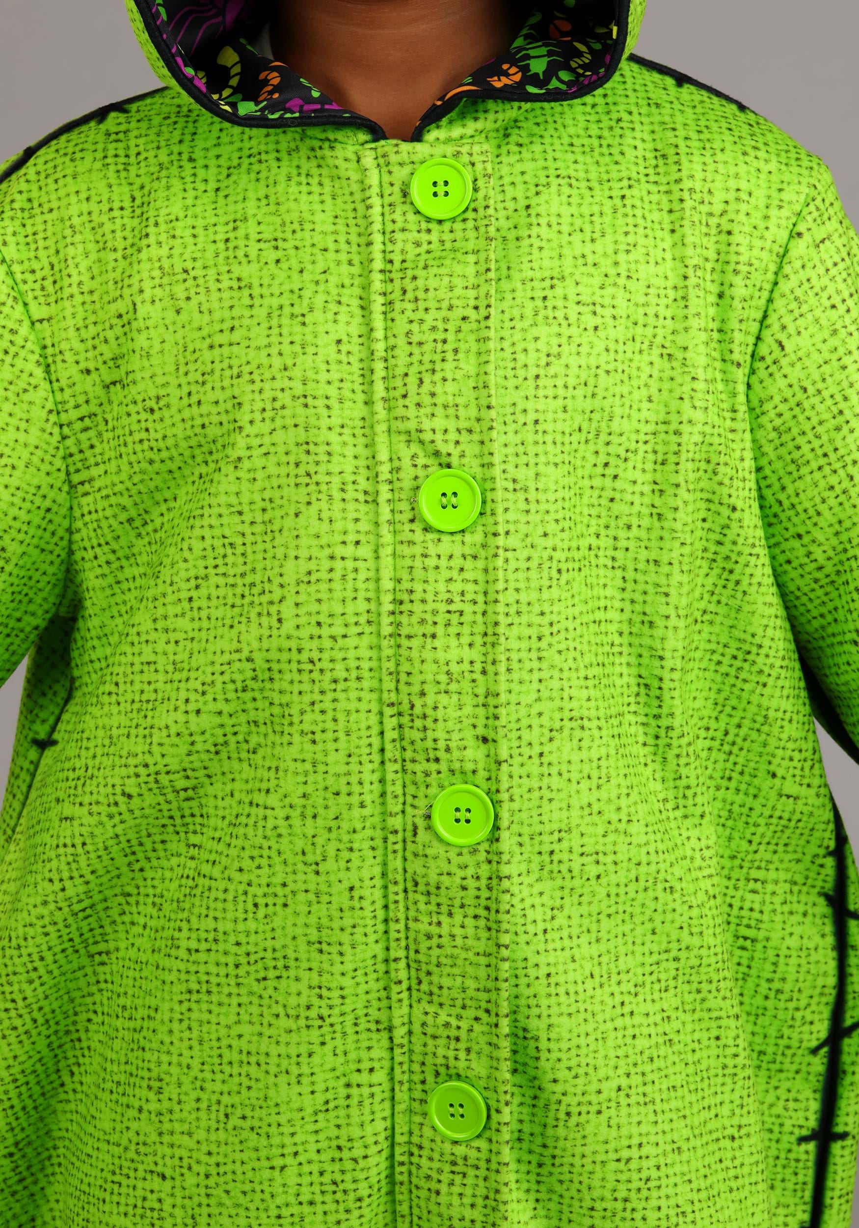 This Made By Us outfit is the perfect mix of cozy and creepy! With sublimated printed fleece and embroidered eyes on the hood, it captures the eerie spirit of our favorite Halloween-themed film. The bug-patterned hood lining adds extra fun, while ribbed cuffs, flip-back gloves, and booties keep little ones comfortable while they're dressed as Disney's most mischievous sack of bugs!