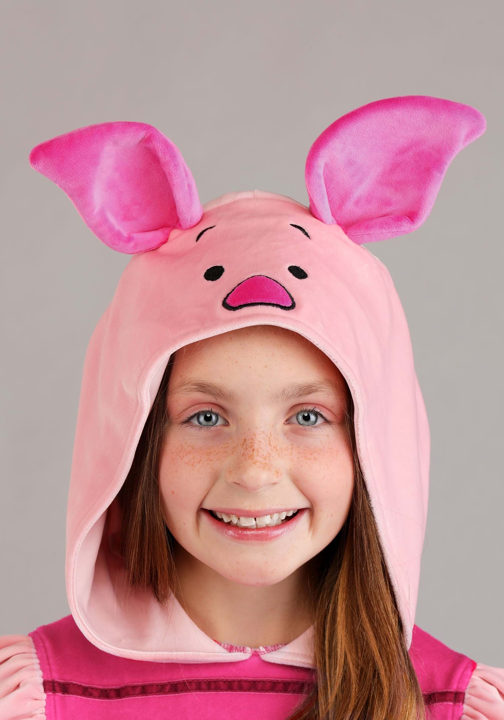 This Piglet dress features cozy plush fabric on the hood and bodice that keeps things soft and snuggly, while the chiffon skirt adds a fun, bouncy feel with layered ruffles. The hood has embroidered facial details along with floppy ears and a fabric snout. Whether for playtime or a special event, your kiddo is going to love this Disney licensed look!