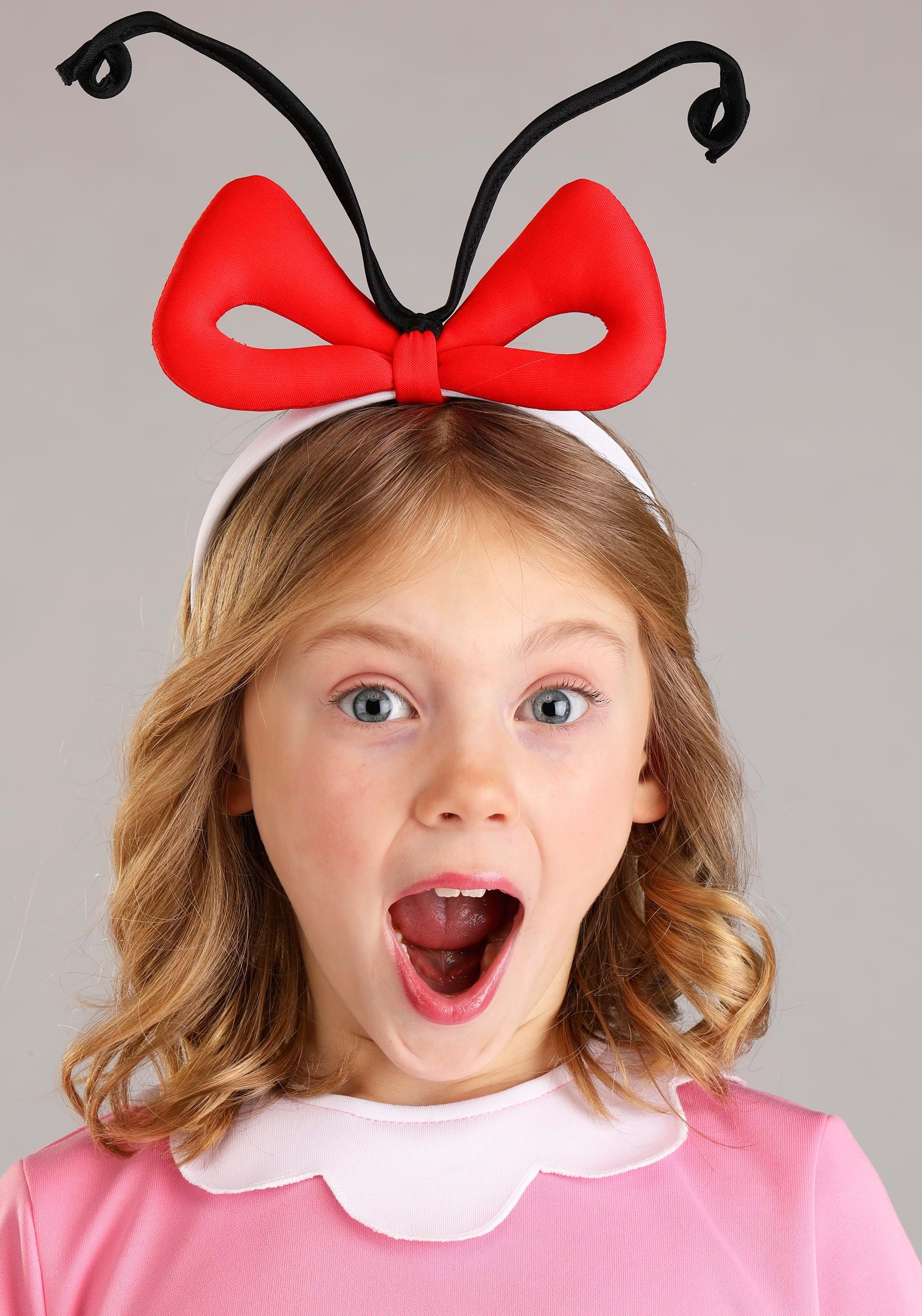 A lightweight plastic headband tops off the Cindy Lou Who look. The headband's wired antenna can be shaped and adjusted to perfectly mimic Cindy Lou's iconic style. Meanwhile, the headband's oversized 3D fiber-filled bow adds a playful touch, making the headpiece both fun and accurate to the original character's spirit.