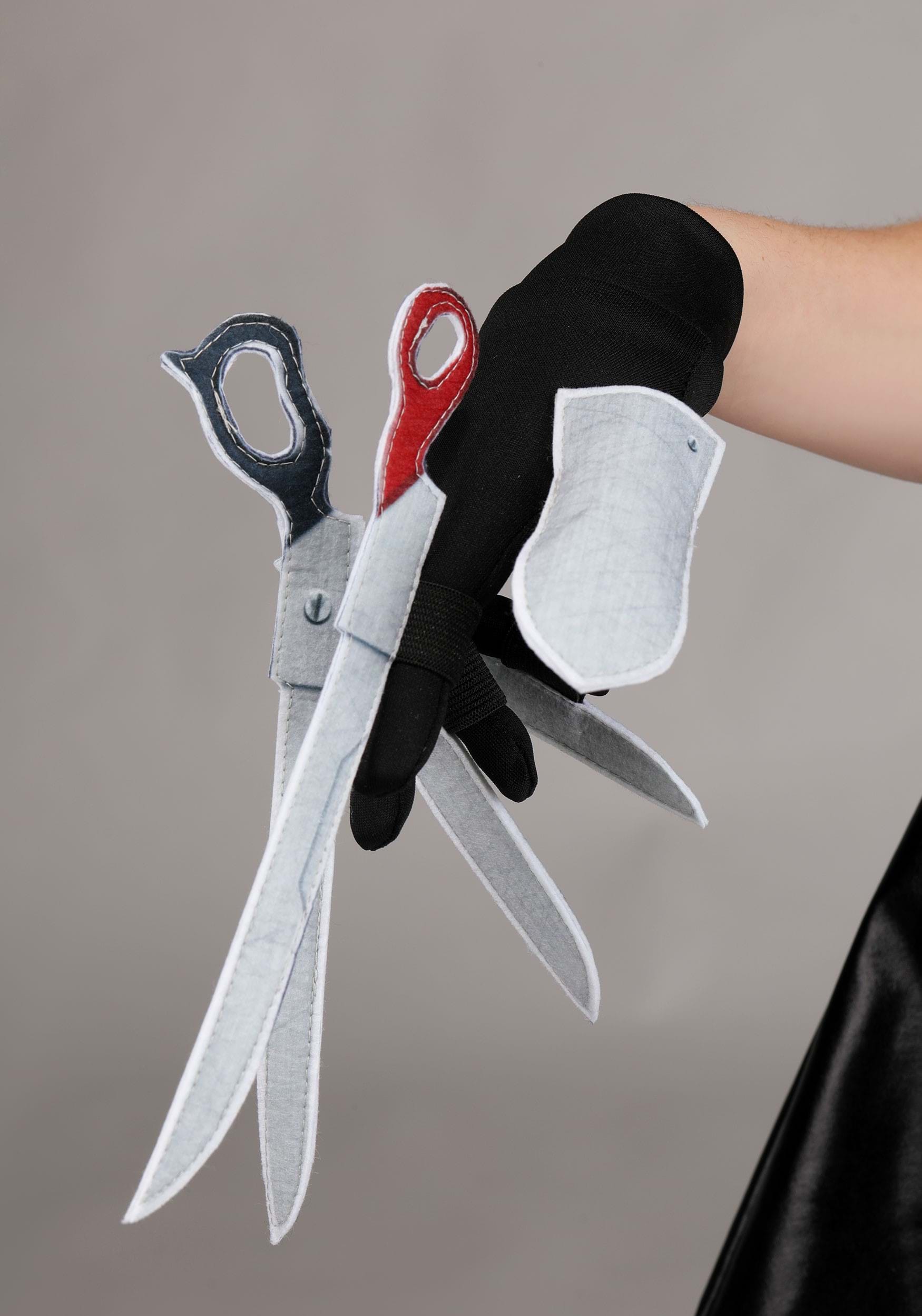No Edward Scissorhands look would be complete without his infamous blades! This costume includes sublimated gloves featuring felt scissors attached with elastic bands, allowing for easy movement while maintaining the illusion of Edward's hands. Soft, safe, and eerily lifelike, they complete the transformation without the worry of real sharp edges.