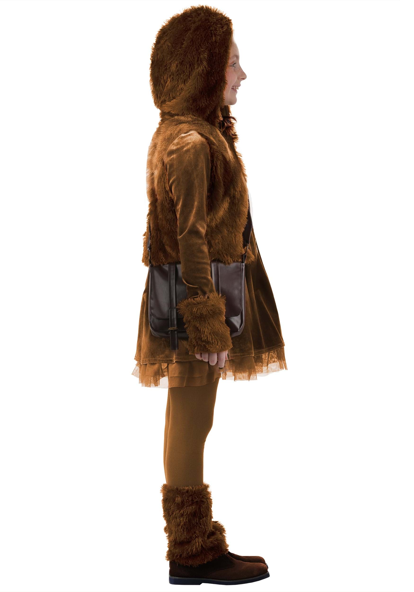 The costume begins with a rich brown stretch velvet dress that's soft, flexible, and made for active young rebels. The skirt features layers of tulle and a satin lining for extra volume and flair, adding just the right touch of dressy drama to this wild-at-heart look. Whether she's trick-or-treating or dancing through the stars, it's built to move and made to shine.