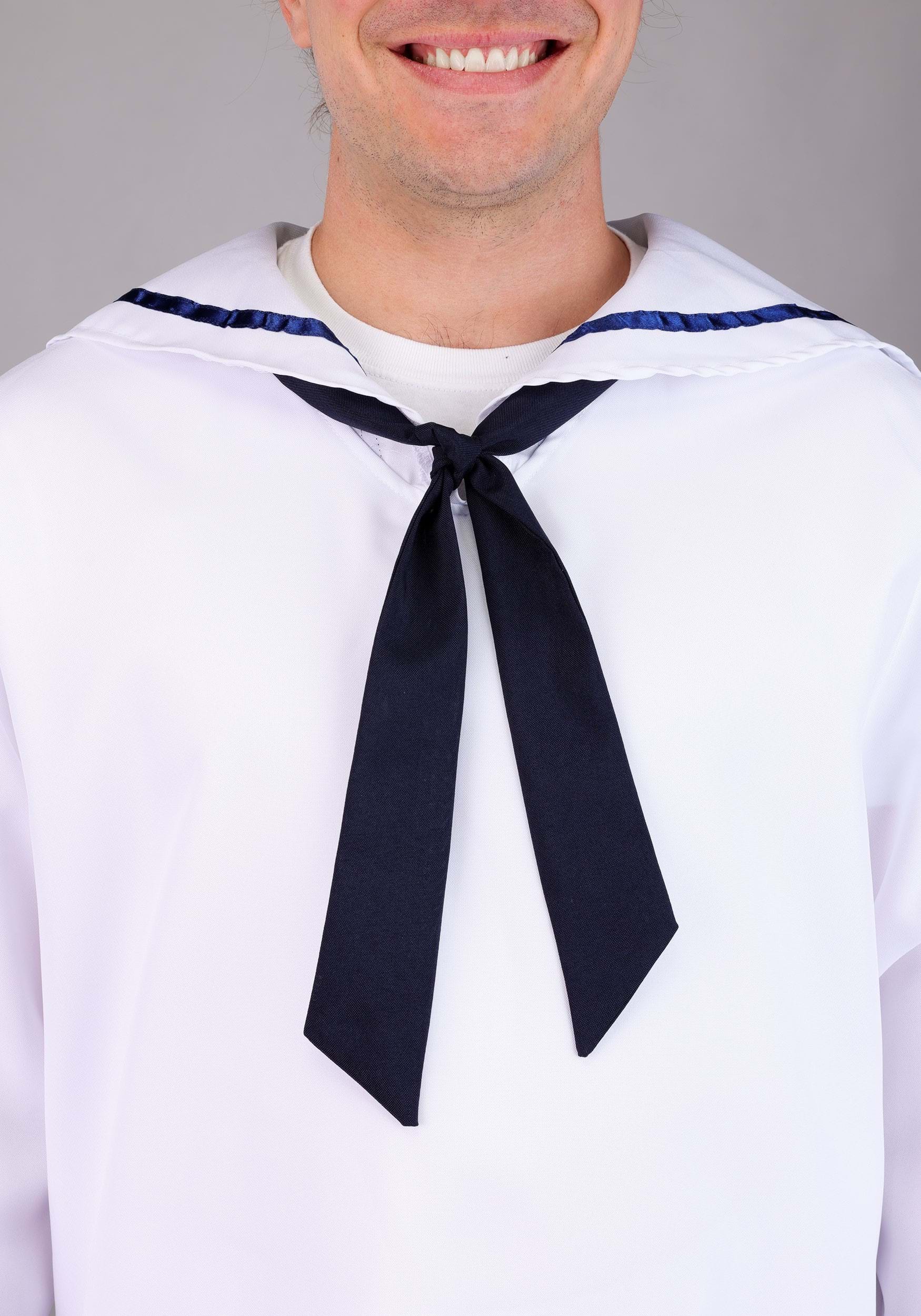 The long-sleeved pullover shirt is the epitome of nautical style, with stripes of navy blue ribbon on the collar and cuffs. It adds the perfect touch of authenticity to your sailor look, making you the star of any Halloween party or costume contest.