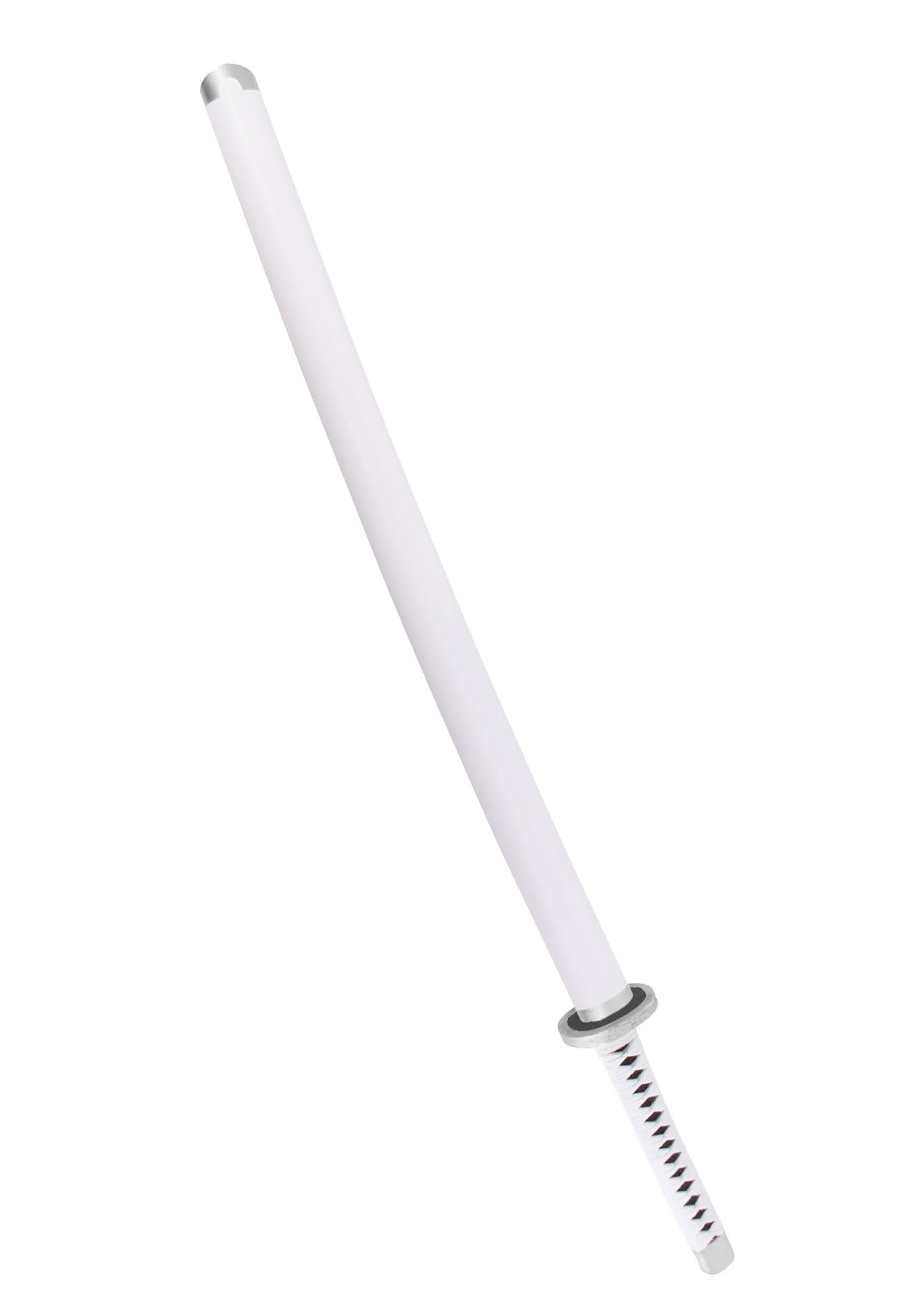 Crafted with a sturdy plastic core and covered in a soft foam exterior, the sword balances realism with safety—ideal for cosplay events, photo shoots, or fan gatherings. The elongated, single-edged blade has a sweeping curve and features a metallic silver paint job with a distinctive black line to capture the anime-accurate look.