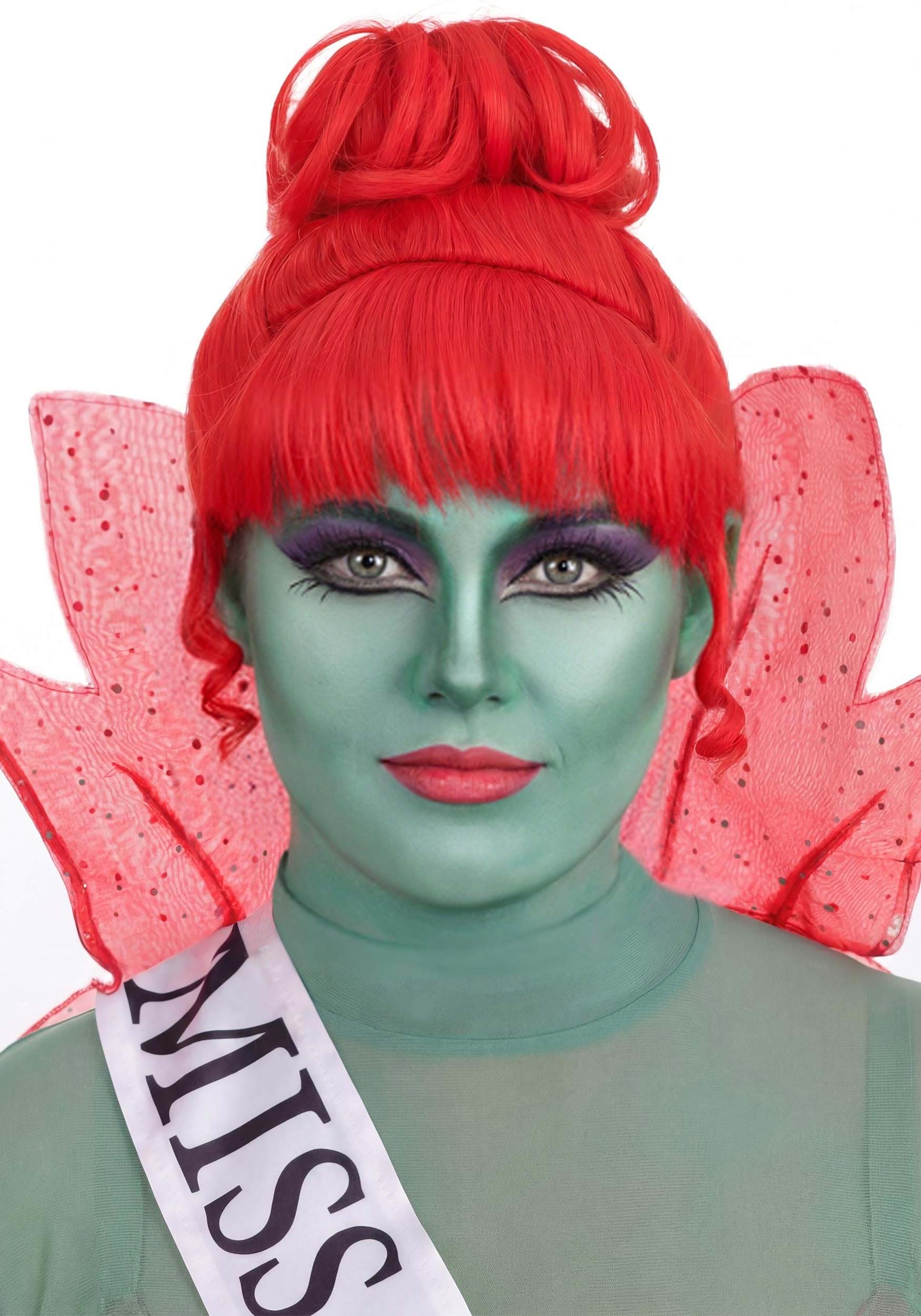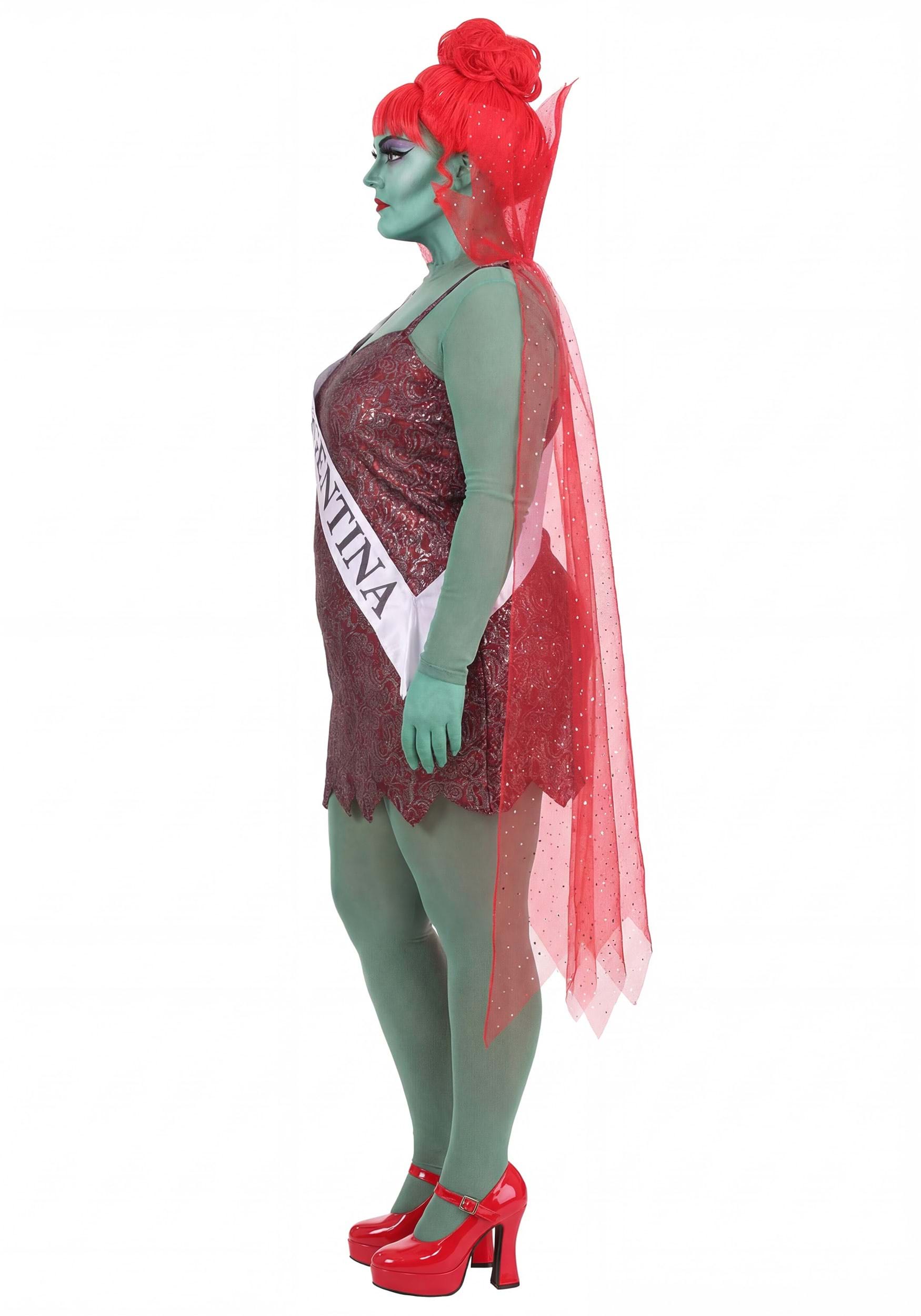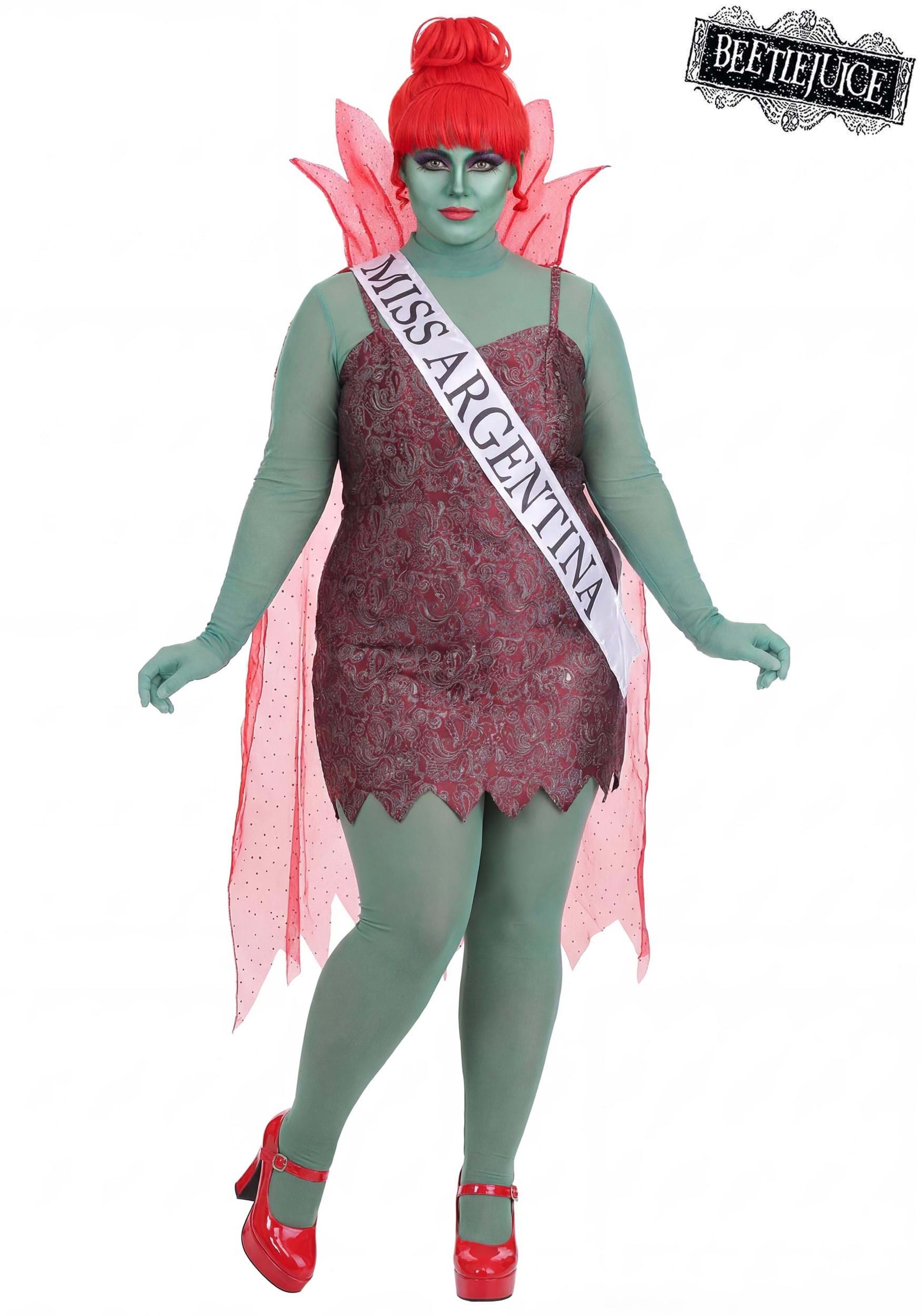 This is an exclusive Plus Size Beetlejuice Receptionist Miss Argentina Women's Costume.