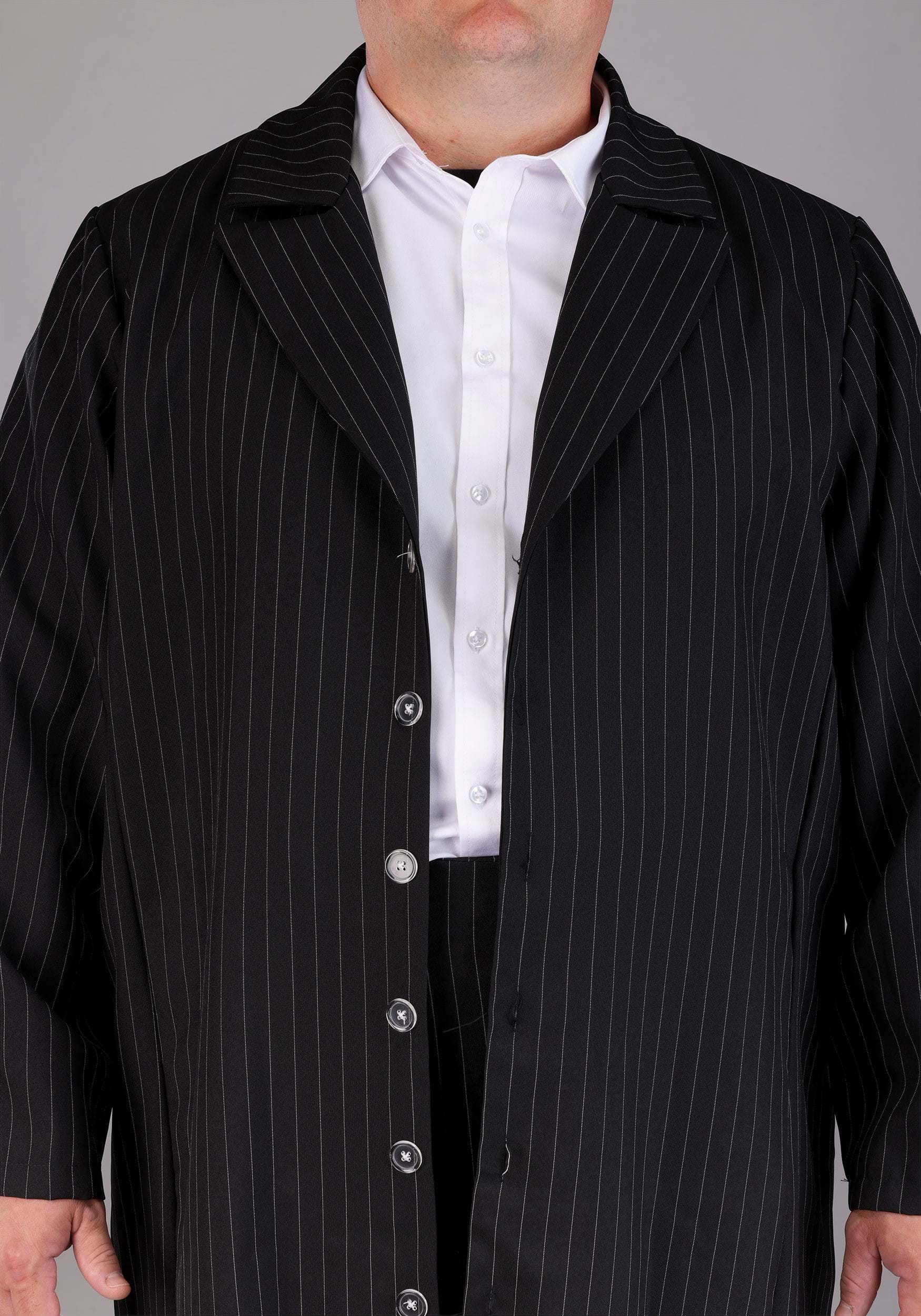 Step back in time to the roaring 20s with our Plus Size Black Zoot Suit Men's Costume. This exclusive ensemble is tailor-made for those who want to make a statement at any Halloween party or themed event. With its classic black fabric and white pinstripes, this costume is the perfect choice for any aspiring mobster or gangster.